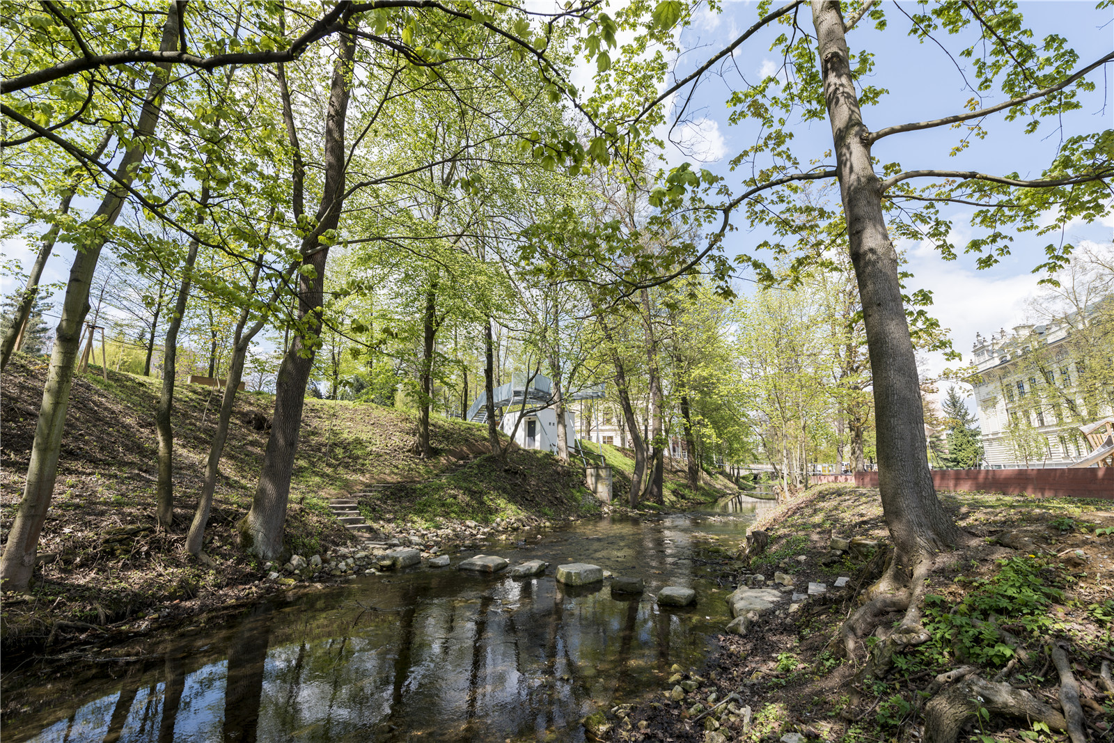 A significant value of the area was the natural character of the river banks and a quiet picturesque adjacent street. On the other hand, it was facing a number of problems: a fenced-in playground and various other barriers prevented access to and alongside the river. The absence of sidewalks led to collisions of pedestrians with cars and bicycles and parts of the territory were not interconnected.