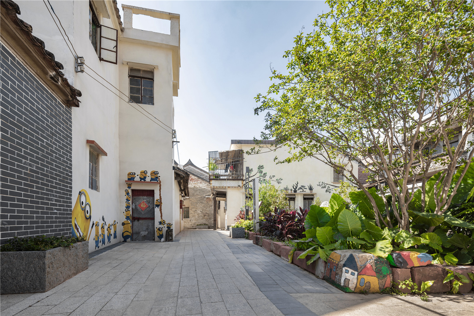 Interesting wall painting, exquisite greening, and clean laneway space outline the fireworks of the old village.