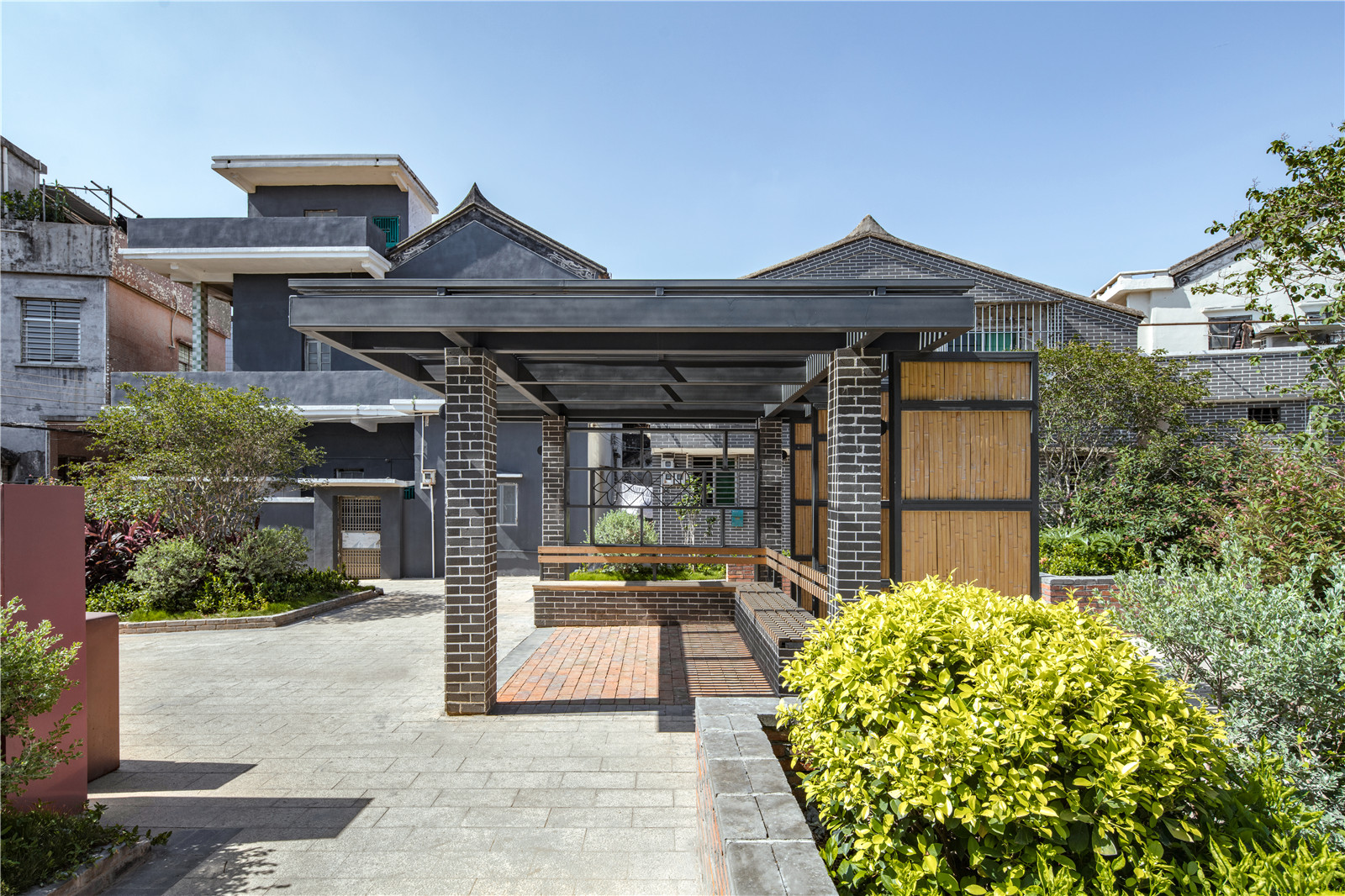 2020年,由東大設(shè)計(jì)負(fù)責(zé)的長(zhǎng)安涌頭社區(qū)美麗鄉(xiāng)村特色連片示范項(xiàng)目全面建成,舊村跟工廠是其中重要的兩個(gè)片區(qū)。舊村位于社區(qū)核心區(qū)域,是村民生活、生產(chǎn)的重要場(chǎng)所。改造前,舊村空心化嚴(yán)重,大量老建筑年久失修變成了殘?jiān)珨啾诘奈7浚粌?nèi)部巷道狹窄,大量的民房建筑野蠻生長(zhǎng)導(dǎo)致公共空間極度缺乏;衛(wèi)生條件惡劣,地面明溝排水,雨污混流,生活環(huán)境品質(zhì)較差。工廠片區(qū)廠房建筑老舊、線路雜亂,公共空間被停車功能完全占據(jù),違章搭建多且雜,安全隱患極大,廠區(qū)環(huán)境品質(zhì)較低且存在很多死角及消極空間。