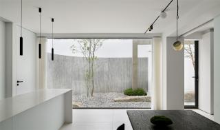 The project is located at a 5-story-height building in an innovation district in Ningbo. It is now served as an exhibition hall and office room for the lighting company. The quarter turned staircase connects the open garden and the patio on the second floor. While allowing bright view in the garden, the inspiration came from the original geometrical shape from the building itself and the concise interior design.