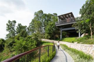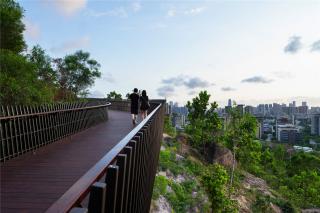 Base on the conditions of the site and the sceneries, the design team has positioned the pavilions at strategic locations and at different orientations to allow resting places and direct vistas for the people to indulge into the beautiful skyline of the city. The glass lookout platform provides transparent views of the natural stone outcrops on the slope underneath adding a thrilling experience to the garden adventure.