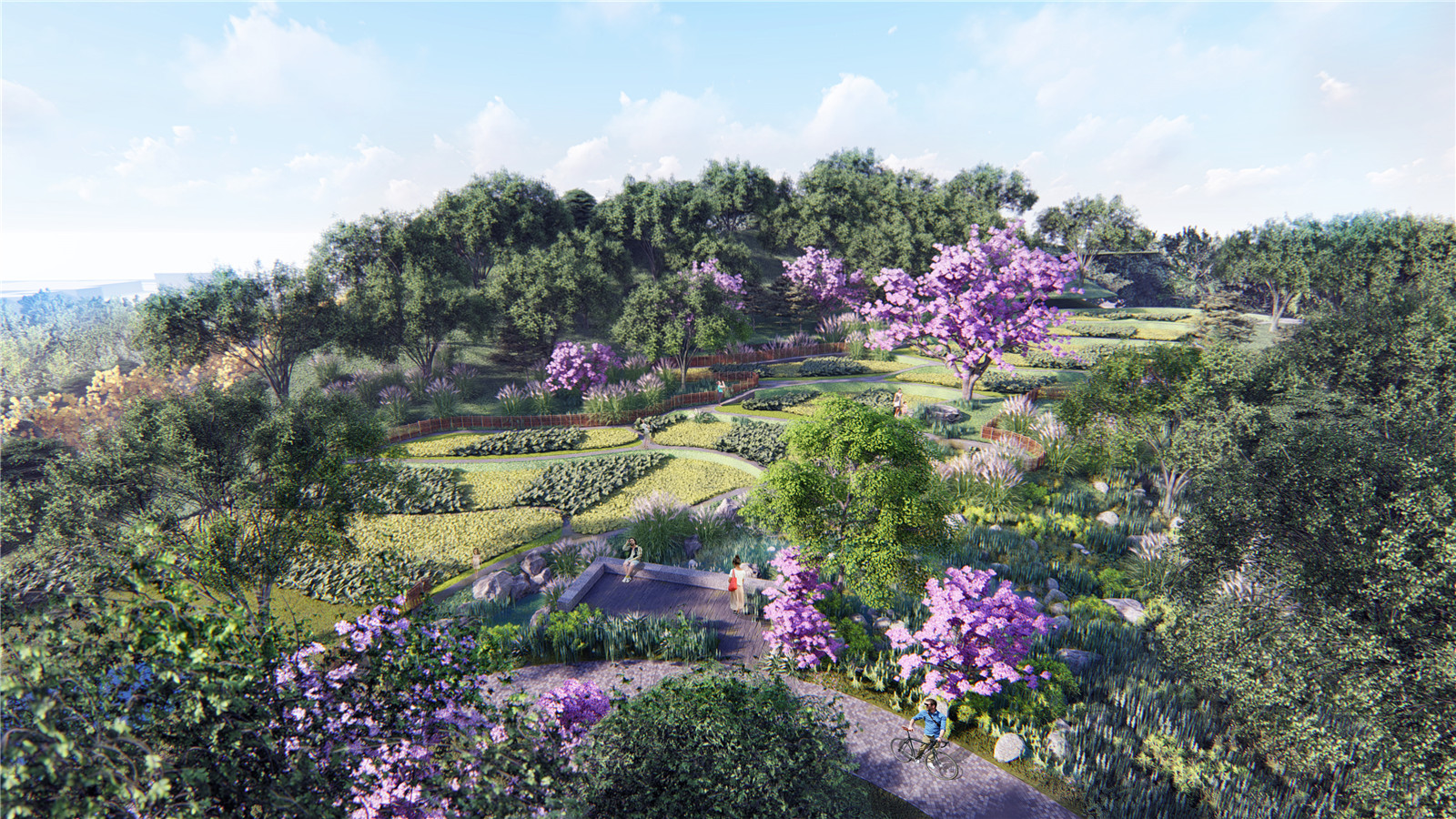 ?There are existing cultivation plots in the park. The design scheme retained the plots and their function, integrate them into the park and create an urban farmland valley in the local context.