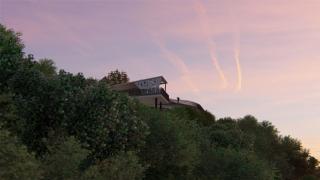 這里是公園中少數(shù)相對(duì)平緩的區(qū)域,也剛好是位置于公園的中央及中高的位置,為公園的核心草坪活動(dòng)空間。懸挑的玻璃觀景平臺(tái)就在此草坪區(qū)域之上,依伴著山頂最高處。而山坡石壁上的植物形成具有山地公園特色的景觀。公園功能建筑做出層疊與地形自然結(jié)合的表現(xiàn),以綠屋頂?shù)脑O(shè)計(jì)將山坡石壁與草坪活動(dòng)區(qū)融合。屋頂?shù)脑煨妥兓试S充足的自然光線流通,實(shí)現(xiàn)生態(tài)環(huán)保的理念。