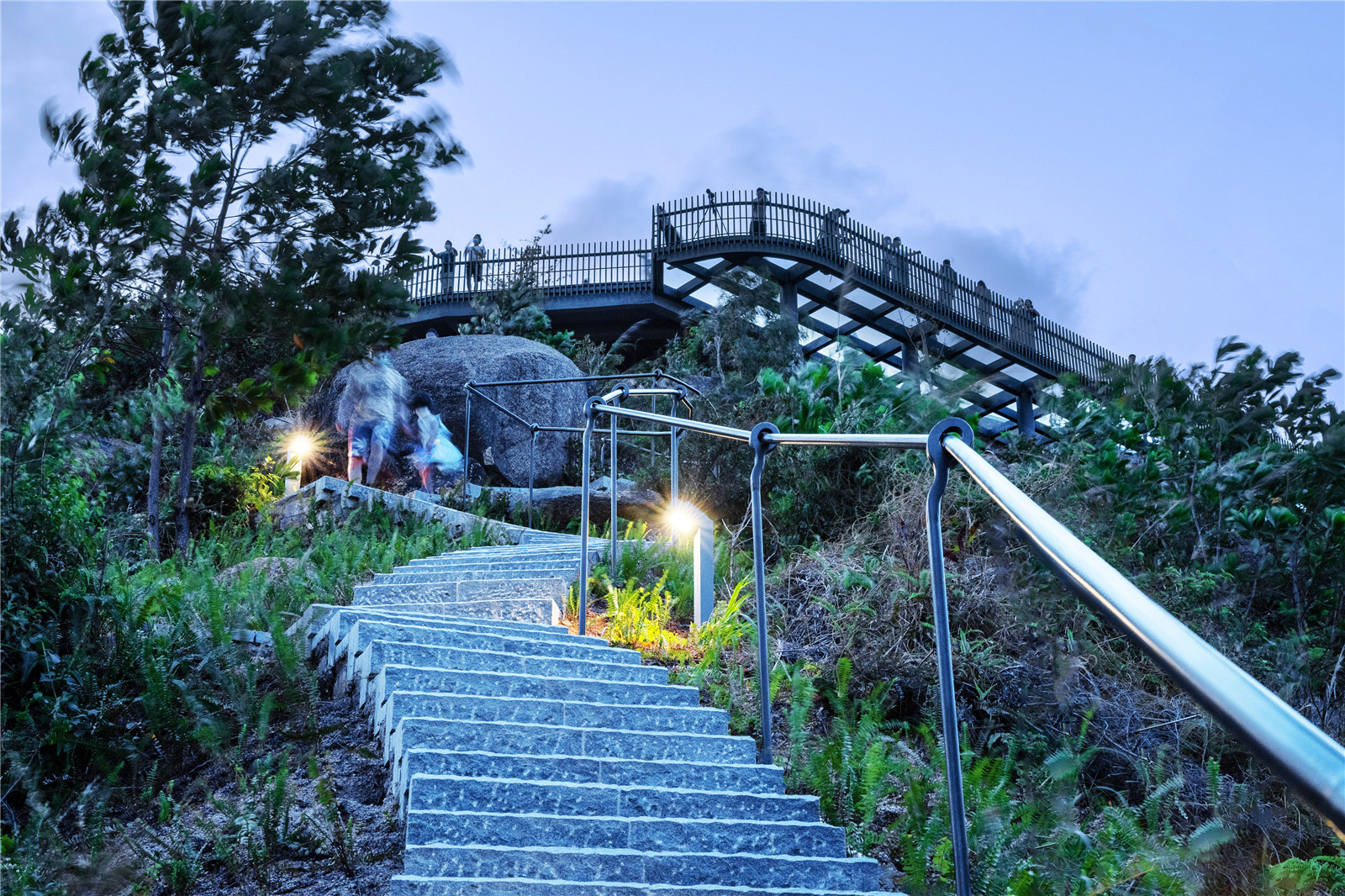 It is an exquisite crown for the mountain, direct the upward movement of pedestrians and elevate toward top of the mountain. It protects the natural vegetation and landform at the top and reduces the human interference and damage to the soil surface. It provides a grand and open walking experience. This Sky Walk shall provide a romantic and leisure place for walking through the clouds in a high speed and high density urban city of Shenzhen.