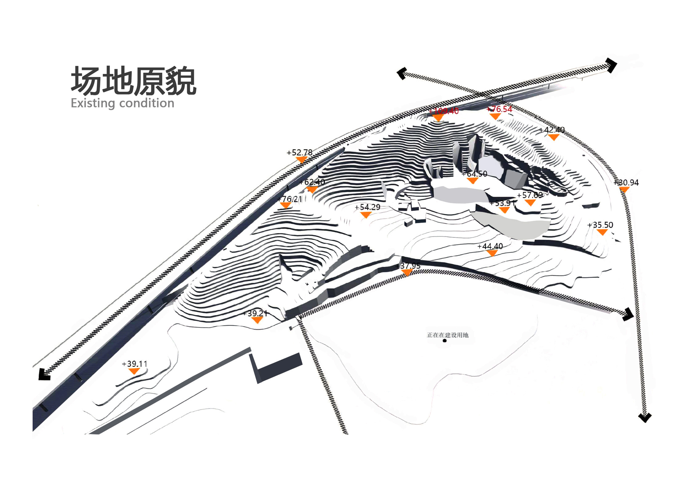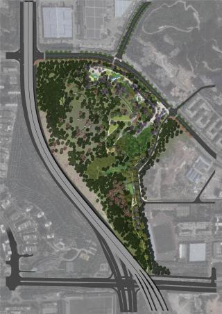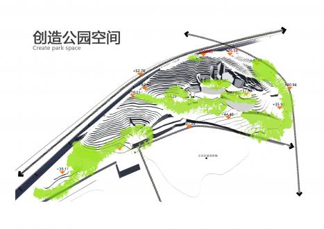 為了更好的認(rèn)識(shí)項(xiàng)目場(chǎng)地的機(jī)遇,設(shè)計(jì)團(tuán)隊(duì)親身到達(dá)現(xiàn)場(chǎng)踏勘解讀場(chǎng)地的環(huán)境資料。從場(chǎng)地現(xiàn)況荒蕪的土樣、零碎的樹(shù)木群落,設(shè)計(jì)團(tuán)隊(duì)認(rèn)為首先需要有效的生態(tài)修復(fù)計(jì)劃及實(shí)施,確定公園城市綠肺的功能定位,提升地塊內(nèi)的生態(tài)條件以及強(qiáng)化區(qū)內(nèi)綠色生態(tài)的聯(lián)系。同時(shí)利用場(chǎng)地內(nèi)的80米高差的山地環(huán)境機(jī)遇,打造層次豐富的休閑公園體驗(yàn)。其次,由于公園地塊位于城市未來(lái)發(fā)展的核心區(qū)域,周邊是密集的高品質(zhì)居住辦公社區(qū),公園設(shè)計(jì)需要滿足當(dāng)下以及未來(lái)市民的生活、學(xué)習(xí)、社交需求。