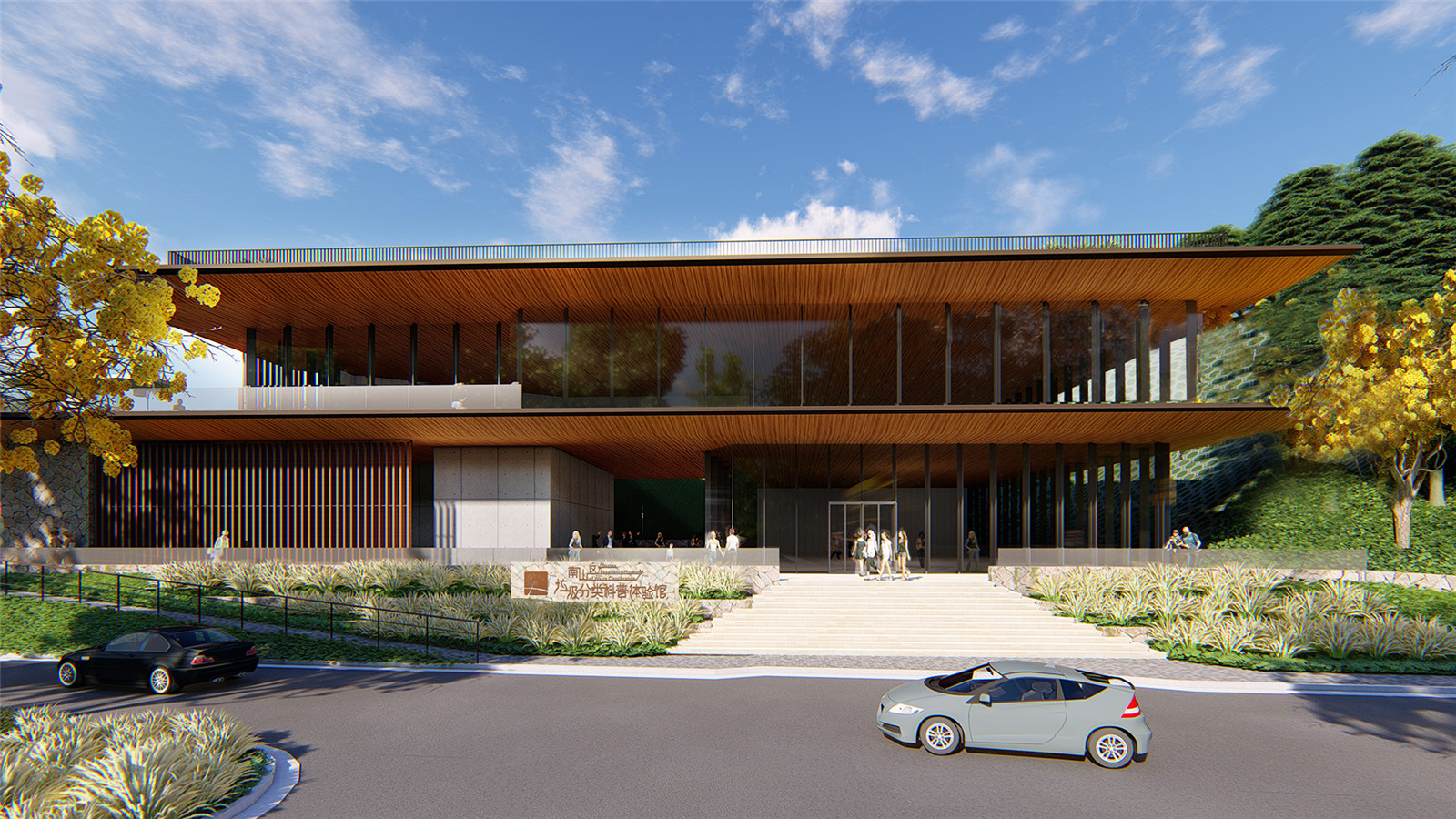 ▼主入口廣場(chǎng)與自然坡地相融合
