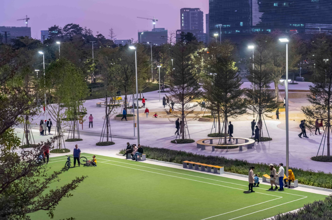 第一期為600公頃的公園園區(qū)即將建成,將成為光明區(qū)在整個大灣區(qū)的一個獨特目的地。由于該都市區(qū)在創(chuàng)新產(chǎn)業(yè)方面取得了重大成功,園區(qū)將重點放在體育和生態(tài)方面的創(chuàng)新。有兩個研發(fā)中心,一個是體育研發(fā)中心,一個是植物學研發(fā)中心,都位于公園的中心。從這里開始,公園將不斷演變與豐富。在中央公園環(huán)路上,一個線性的植物和樹木苗圃被整合在一起。