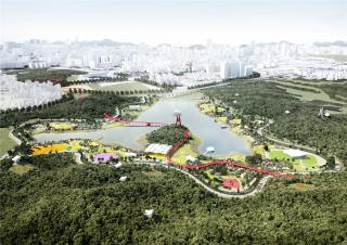 ▼森林體育公園地標:紅色步道設(shè)計示意圖