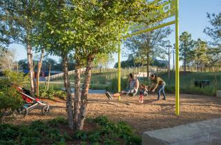 公園的設(shè)計目標(biāo)是打造“中城區(qū)頂級城市公園”,為實現(xiàn)該目標(biāo),設(shè)計團隊認為公園應(yīng)完美地融入整個地區(qū)。場地靠近輕軌站臺,周圍有近2000套住宅的房產(chǎn)開發(fā)項目,因此需要建造近400個車位的地下停車場,設(shè)計團隊充分利用了這樣的地理條件,為這類處在狹小城市環(huán)境中的地塊開發(fā)樹立了標(biāo)桿。借助復(fù)雜的排水系統(tǒng)、強大的防水機制、水泵和雨水蓄水池等設(shè)施,設(shè)計團隊成功地在地下停車場的屋頂上建起了充滿生機且可持續(xù)發(fā)展的公園,樹木和花園在充足的土壤中茁壯成長。帶著這些考量,設(shè)計團隊開展合作,設(shè)計并推動了公園的建設(shè),不僅滿足了鄰里和周圍社區(qū)的需求,還通過規(guī)劃和創(chuàng)新設(shè)計提高了該地區(qū)的品牌完整性。