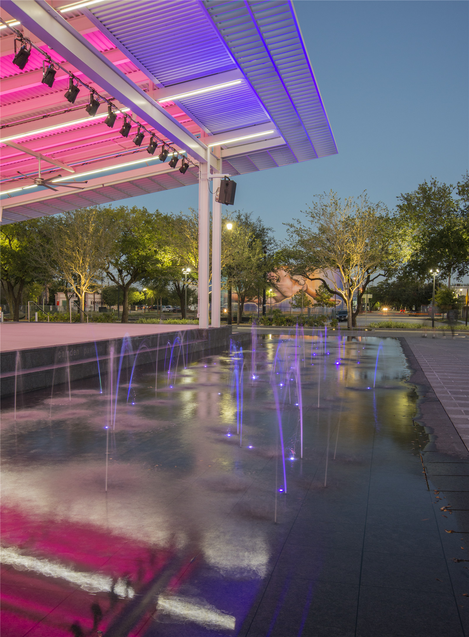 Challenged with creating the “premier urban park destination in Midtown”, the design team understood that this park needed to seamlessly integrate into the District and capitalize on the site’s geographic locale, its proximity to a light rail transit stop, surrounding developments totaling nearly 2,000 residential units, and the desire to place a 400 car parking garage below grade--setting a benchmark for developments like this to take place in the tight urban constraints of this site. One challenge that proved surmountable was creating an environment where trees and gardens could thrive in adequate soil volumes and uphold a living, sustainable park above an underground parking garage with an intricate system of draining capabilities, robust waterproofing, pumps, and a rainwater cistern. With all of this in mind, the design team successfully collaborated, designed, and implemented a park that not only serves the needs of the neighborhood and greater community but also bolstered the integrity of the District’s brand through programming and innovative design features.