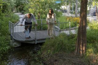 設(shè)計的亮點在于貫穿場地的“Bayou”,這是一條可作為雨水滯留裝置的人工水渠,模仿了休斯頓地區(qū)河道、沼澤、低地闊葉林和濕地等自然景觀,而這些元素正是區(qū)域水利系統(tǒng)的重要組成部分。它通過防御洪水、改善水質(zhì)以及保護兩棲動物、昆蟲和鳥類等野生動物棲息地,提高了經(jīng)濟和生態(tài)的韌性。在2017年8月哈維颶風(fēng)帶來的極端降雨中,它吸收并滯留了場地內(nèi)的所有雨水,防止洪水肆虐,保護公園免受破壞。