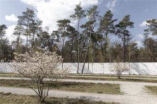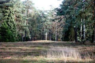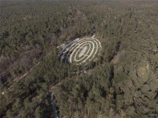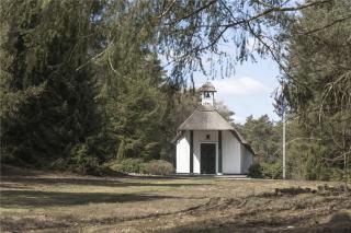 The original war cemetery designed by D. Haspels is modest but powerful. At the entrance you'll find a small wooden chapel, and behind it is a star-shaped space with a cross in the middle. The strength of the design lies in the organization of open spaces enclosed by forest, and in the contrast between light and dark. In keeping with these qualities, it was decided not to continue with the original plan, but to allow the extension to be an independent design. The extension consists of a long footpath connecting the main routes of the original cemetery to the new second entrance along Groenendaalseweg. There are eight elliptical open spaces along the path. The path is a beautiful winding line cut out into the forest with heather vegetation. The open spaces act as separate burial chambers, and each has its own character. The position and layout of these rooms is related to the topography, the environment, and the existing war cemetery.