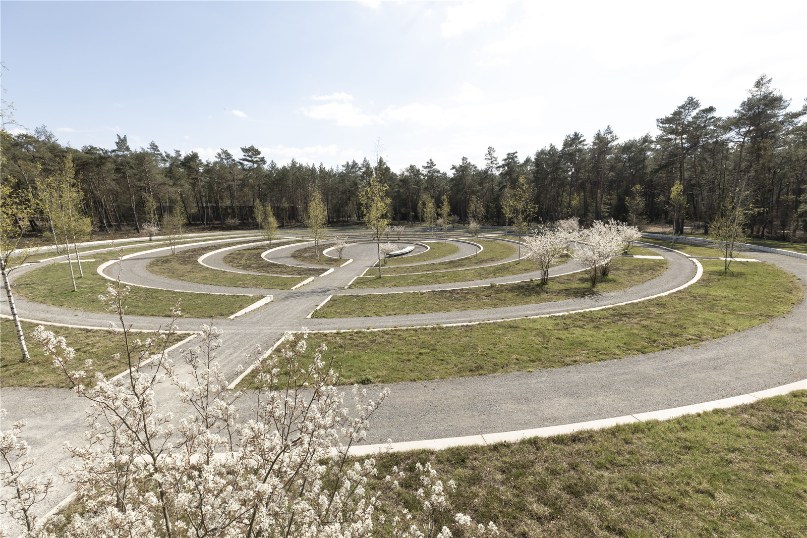 Loenen Cemetery is located in a nature reserve on the Veluwe, consisting of forest and heath. The cemetery was built in 1949 on the initiative of the Dutch War Graves Foundation (OGS). Every Dutch national who is deemed a war victim according to the statutes of the OGS can be buried at Loenen. The number of graves will never be thinned. To accommodate possible additional war victims in the future, OGS purchased land adjacent to the existing cemetery. It is a triangular area with a wooded character that must provide space for a total of approximately 5,000 graves. In 2009/2010, Karres en Brands designed a masterplan for the new war cemetery that will be developed in different stages over time. The design involves a 1.5 km winding path linking eight burial chambers. The OGS installed the first two burial chambers in 2015/2017, while the third was commissioned by the Loenen National Veterans Cemetery (NVBL) in 2020/2021 and set up as a cemetery for veterans. The memorial and education centre has also been built, as has a new entrance to the cemetery.
