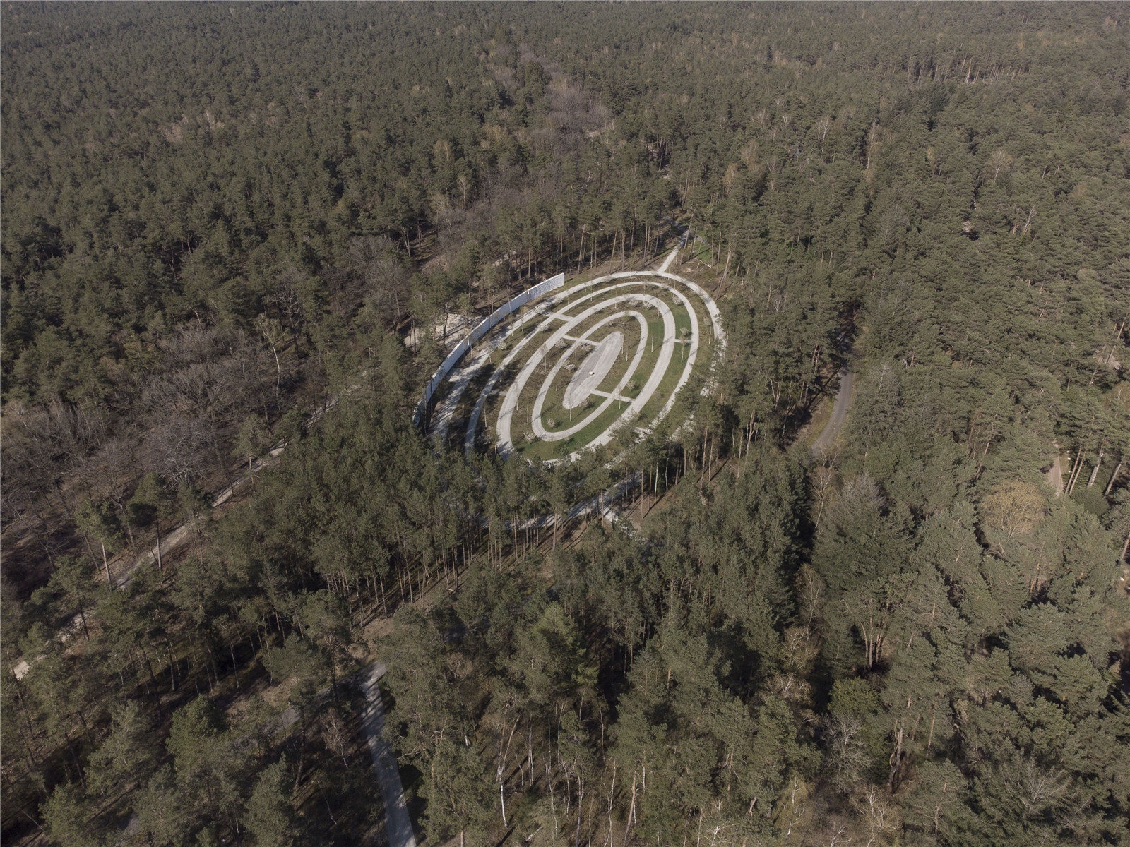 公墓位于Veluwe河畔的自然保護(hù)區(qū)內(nèi),由大片森林和石楠樹組成。該公墓于1949年,在荷蘭戰(zhàn)爭(zhēng)墓地基金會(huì)(OGS)的倡議下建成。為了可以容納以后的戰(zhàn)爭(zhēng)受害者,OGS在現(xiàn)有墓地附近購(gòu)買了土地。這是一個(gè)有廣袤樹林的三角形區(qū)域,以安置總共約5000個(gè)墳?zāi)埂?009-2010年,Karres en Brands對(duì)新的公墓進(jìn)行了總體規(guī)劃。該方案將隨著時(shí)間的推移分不同階段進(jìn)行開發(fā)。該設(shè)計(jì)有一條1.5公里的蜿蜒道路,連接著八個(gè)墓葬區(qū)。OGS在2015-2017年建設(shè)了前兩個(gè)墓葬區(qū),而第三個(gè)墓葬區(qū)的建造在2020-2021年由Loenen國(guó)家退伍軍人公墓(NVBL)負(fù)責(zé),建成后將成為退伍軍人的公墓。目前紀(jì)念館和教育中心已完工,墓地的新入口也已建成。