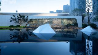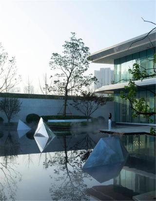 中庭空間以“高山流水,水韻灘涂”為主題設(shè)計(jì),譜寫潺潺水,長(zhǎng)悠悠,來無(wú)盡,去無(wú)休的“知音文化”。
