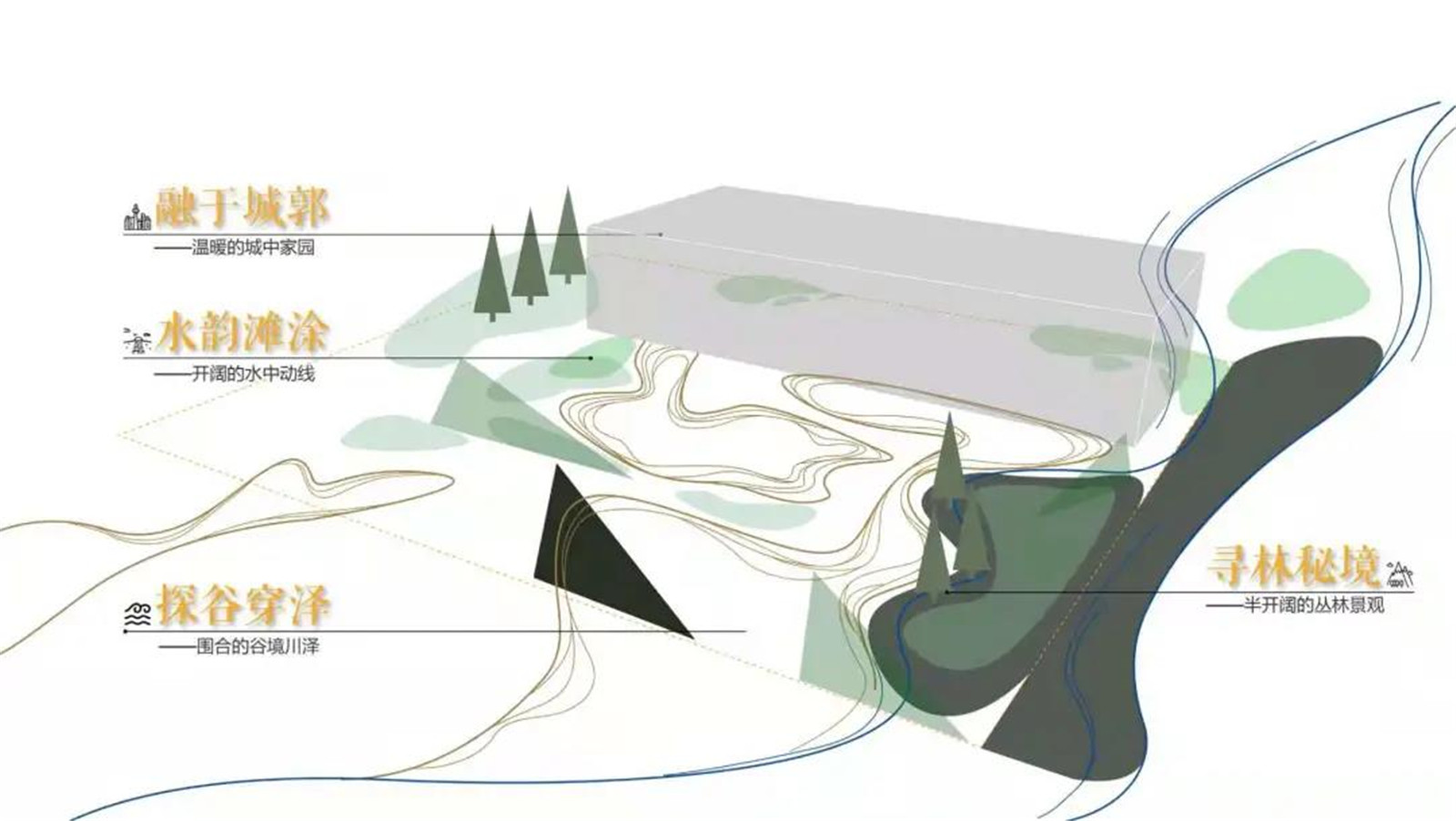 幽意無(wú)斷絕,此去隨所偶,晚風(fēng)吹星點(diǎn),探谷入溪口,過渡空間設(shè)計(jì)上。以“探谷幽靜,尋林秘境”為主題打造。