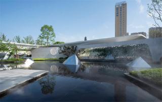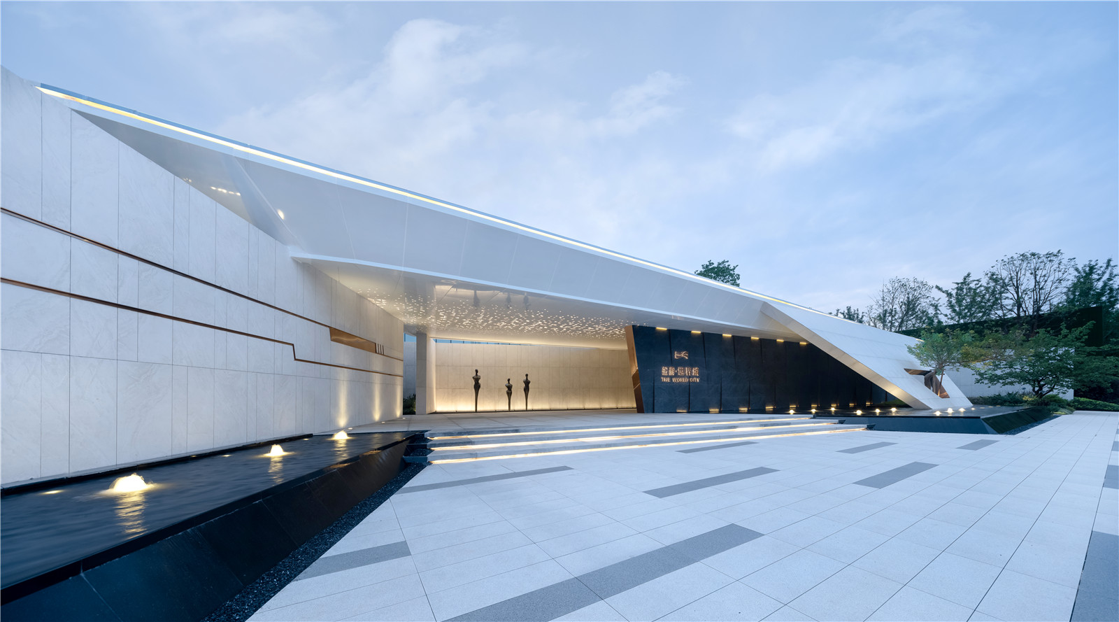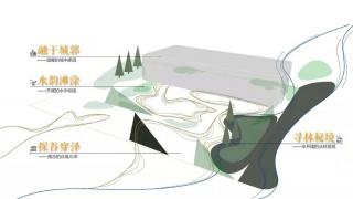 在地域文脈的傳承上,我們選用現(xiàn)代詩(shī)意的設(shè)計(jì)手法,擷取山體、城郭等意象簡(jiǎn)約線條,進(jìn)行立體裁剪,形成富有峽谷風(fēng)貌意境的強(qiáng)昭示性形象。在這里,山谷形景墻與自然綠植構(gòu)建成畫,樹影與古今相映成趣,承載起永恒凝固的歷史文化,與示范區(qū)內(nèi)部進(jìn)行藝術(shù)溝通,啟幕無(wú)邊川澤詩(shī)意棲居。