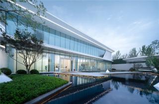 后場(chǎng)庭院延續(xù)中庭“水韻灘涂,堤岸層疊”的靈感元素,設(shè)計(jì)自然景觀墻,小憩于此,建筑是空山幽谷,景觀是碧岸柔溪,花語(yǔ)是自然賦詩(shī),猶如置身一處空間層次豐富,開合有度,生機(jī)盎然的世外桃源,方寸之間,天地遠(yuǎn)大,引人冥思,恬靜安然。