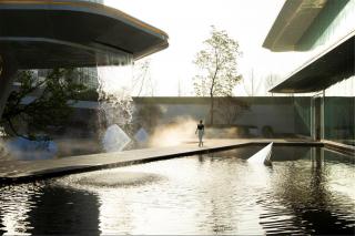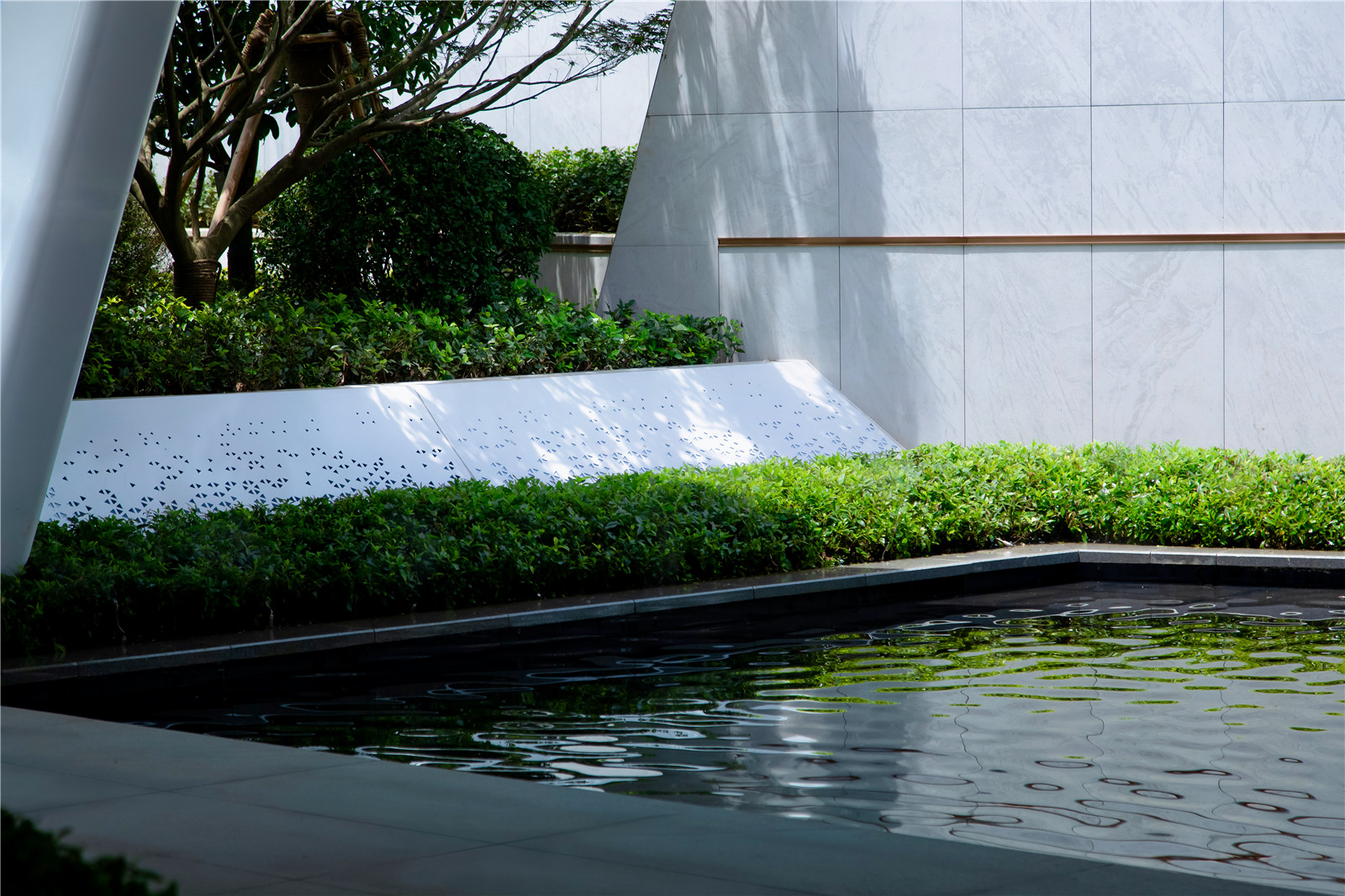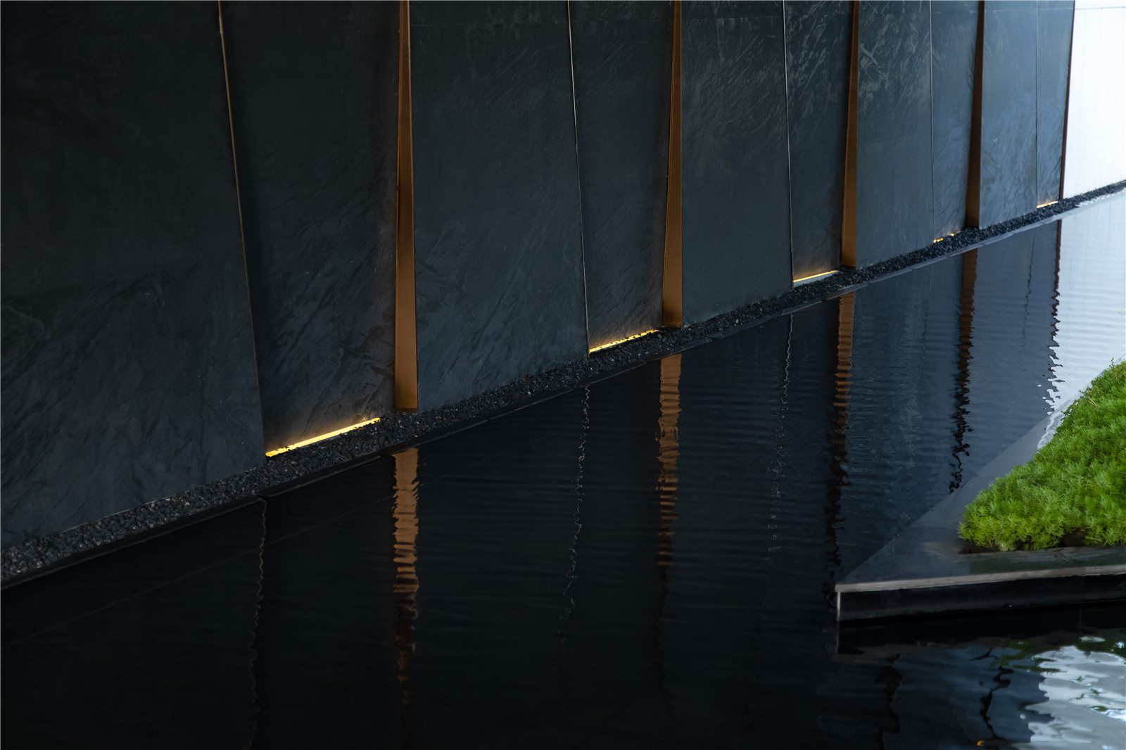 對(duì)景跌水設(shè)計(jì),靈動(dòng)自然,似一匹銀河中織起的輕紗,在線與面中找到最具有詩(shī)意的表達(dá),唱響起伯牙與子期的知己之遇,希望觀者立于此,以心緒弦,彈奏出一場(chǎng)高山流水覓知音的旅程。
