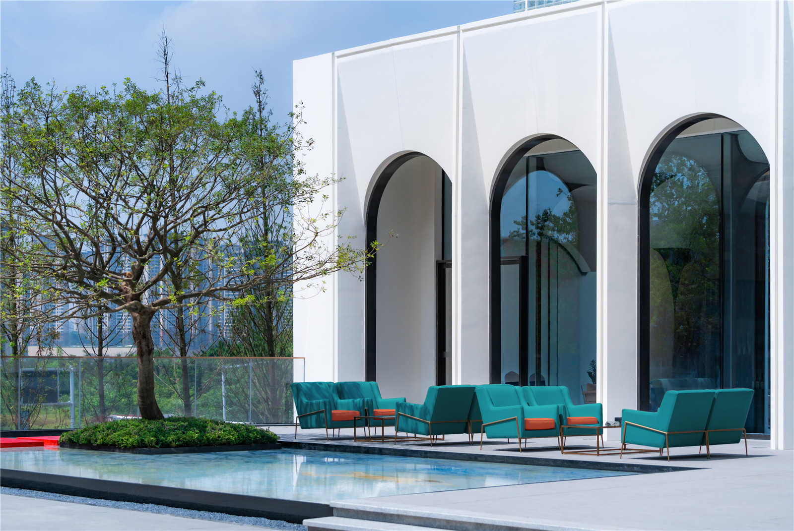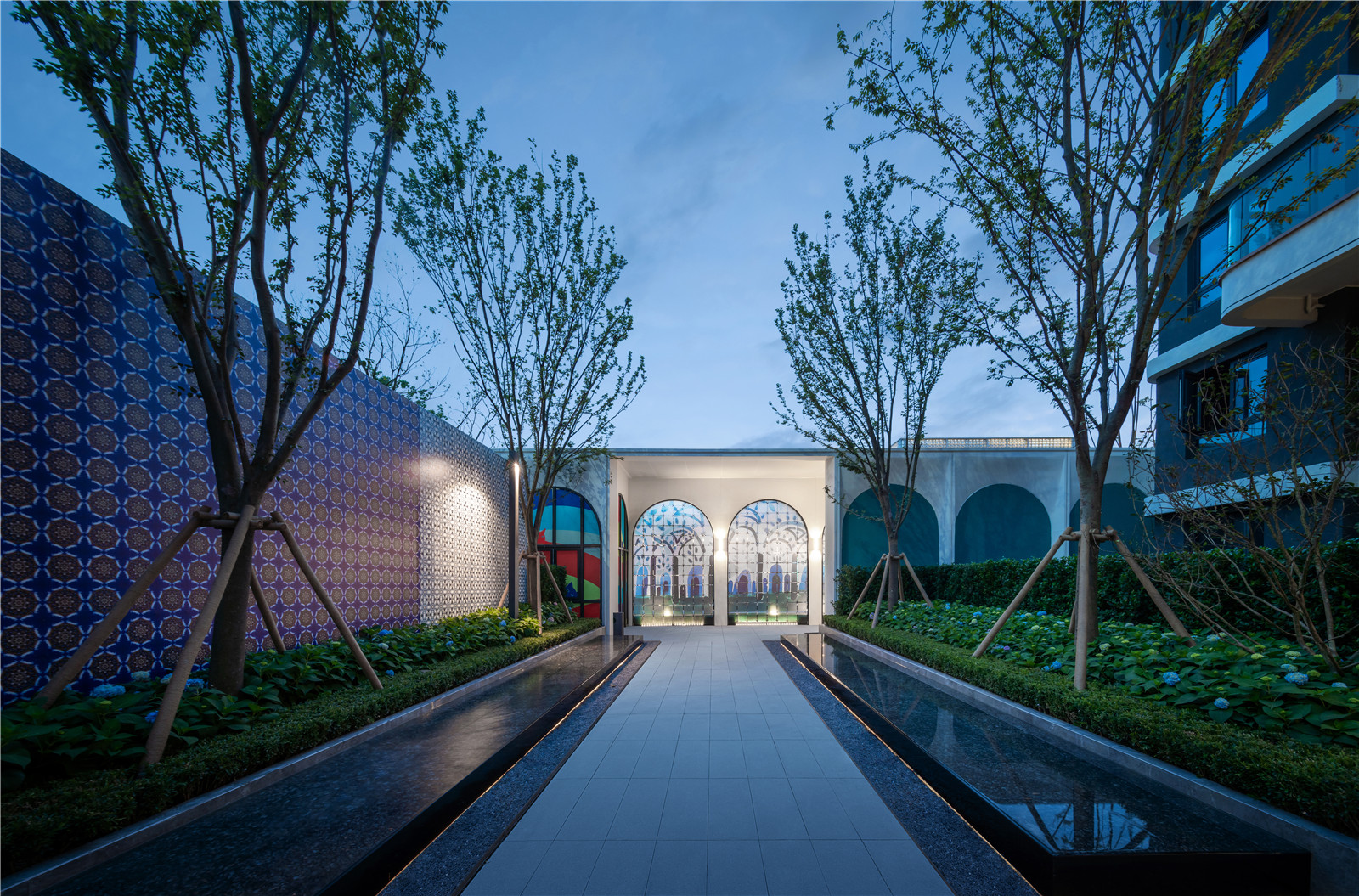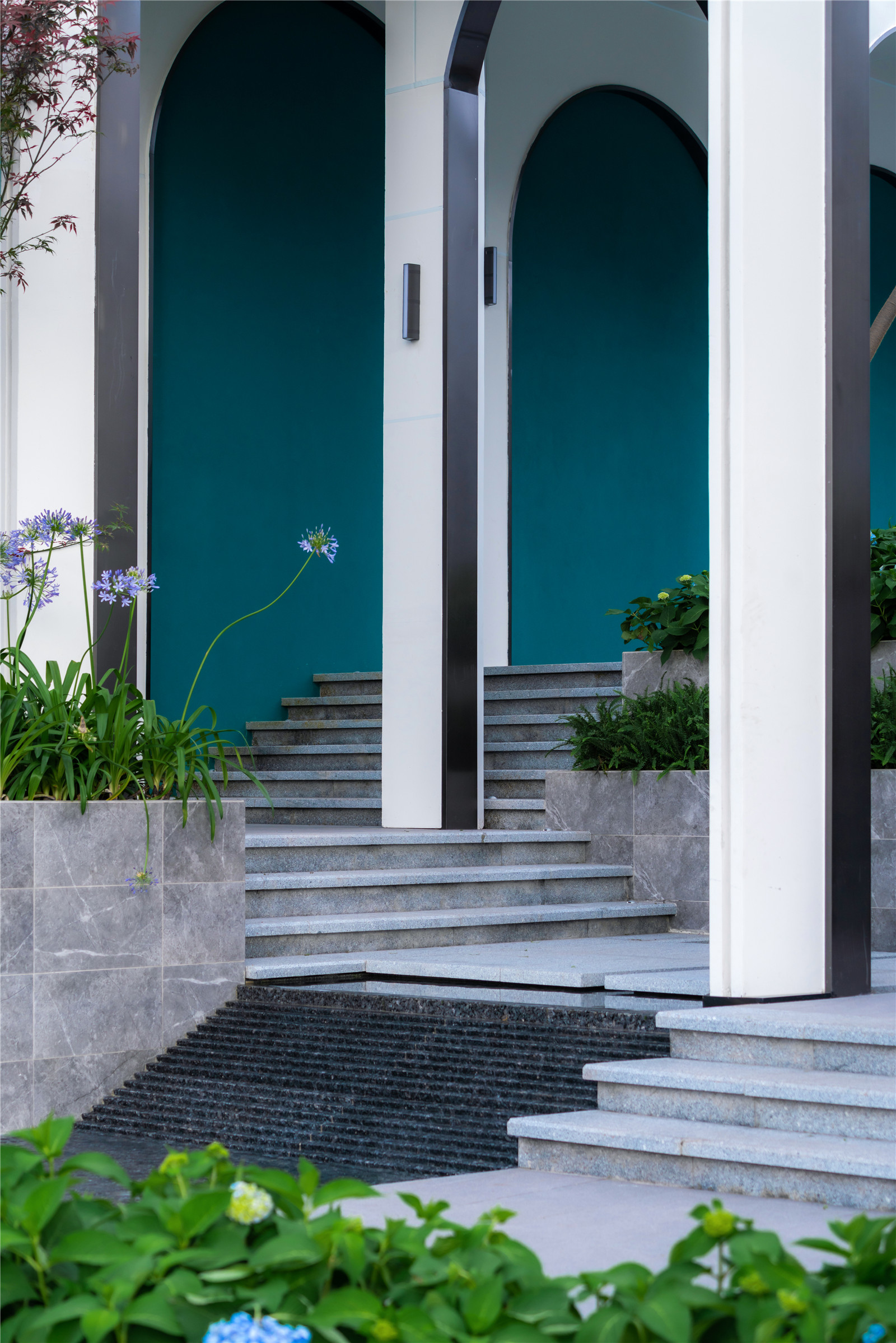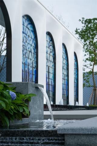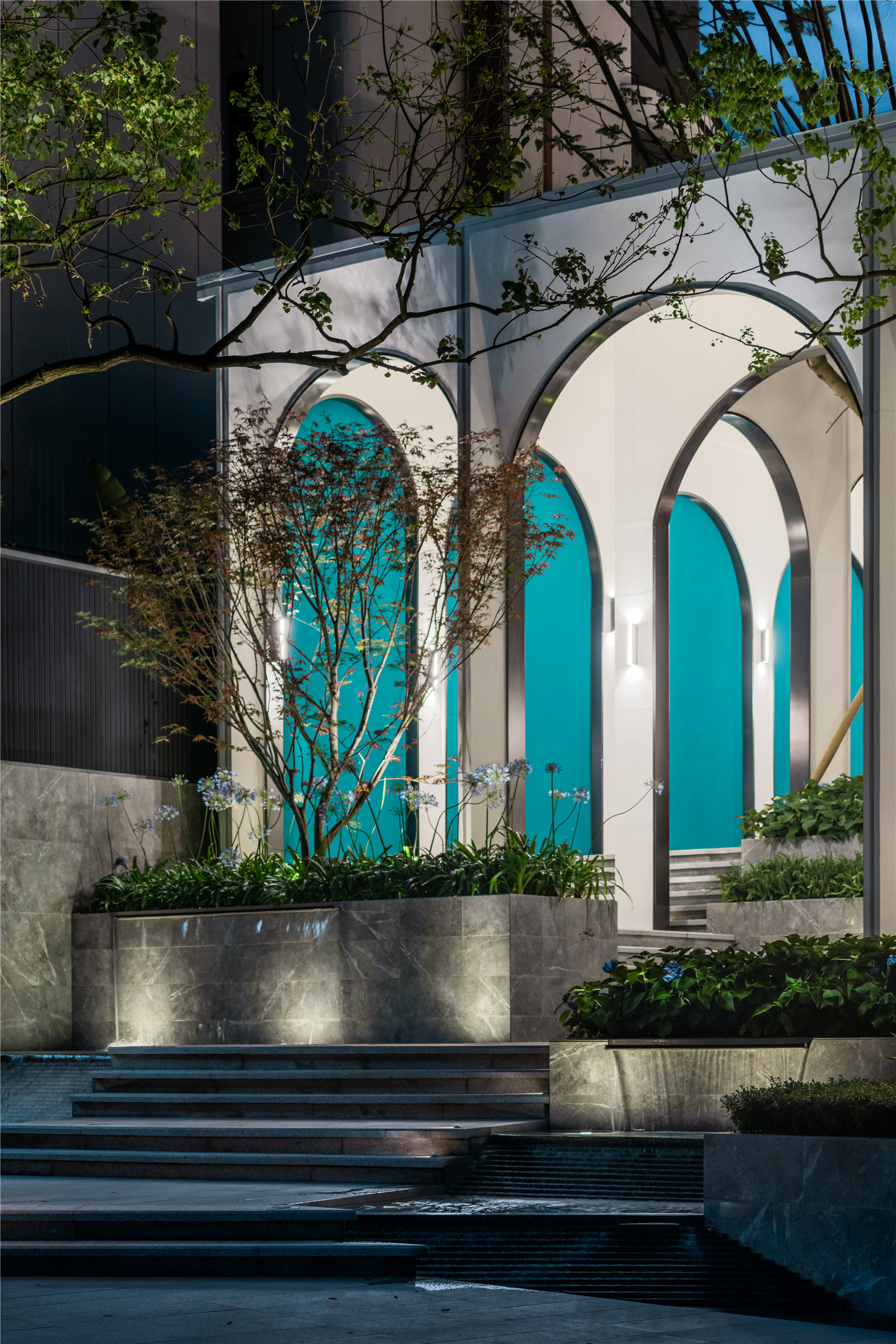 提取畫作中澄澈的碧藍(lán)色調(diào)為意象,繪制為入口處的折形種植池,極富“氣韻生動(dòng),遷得妙想”之精髓。