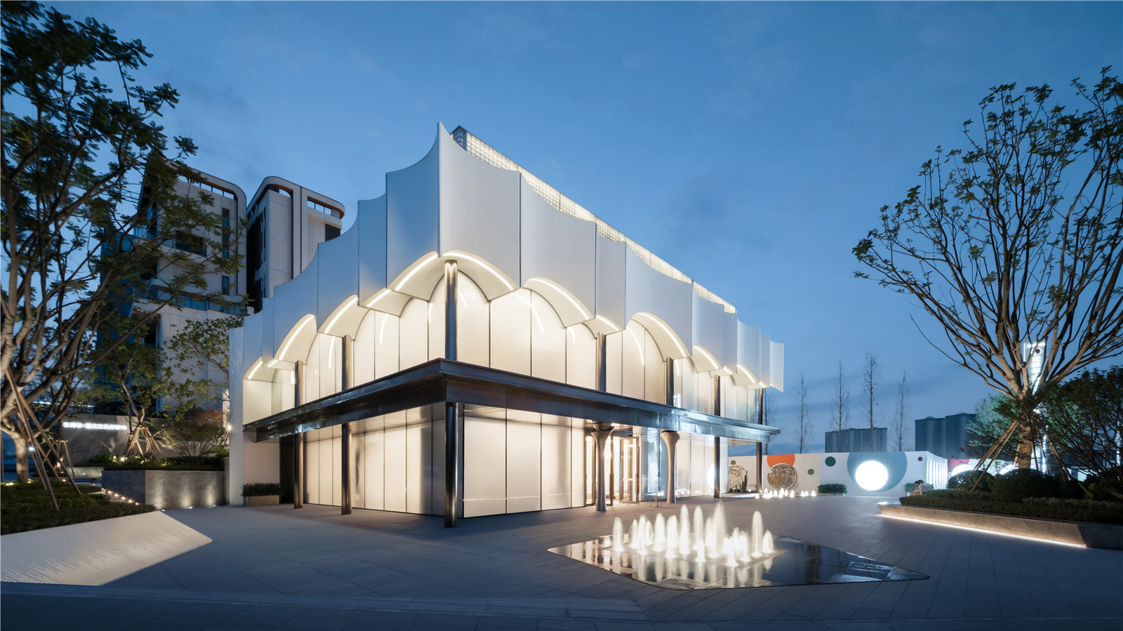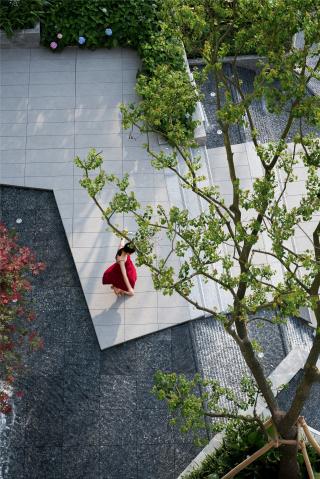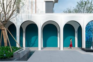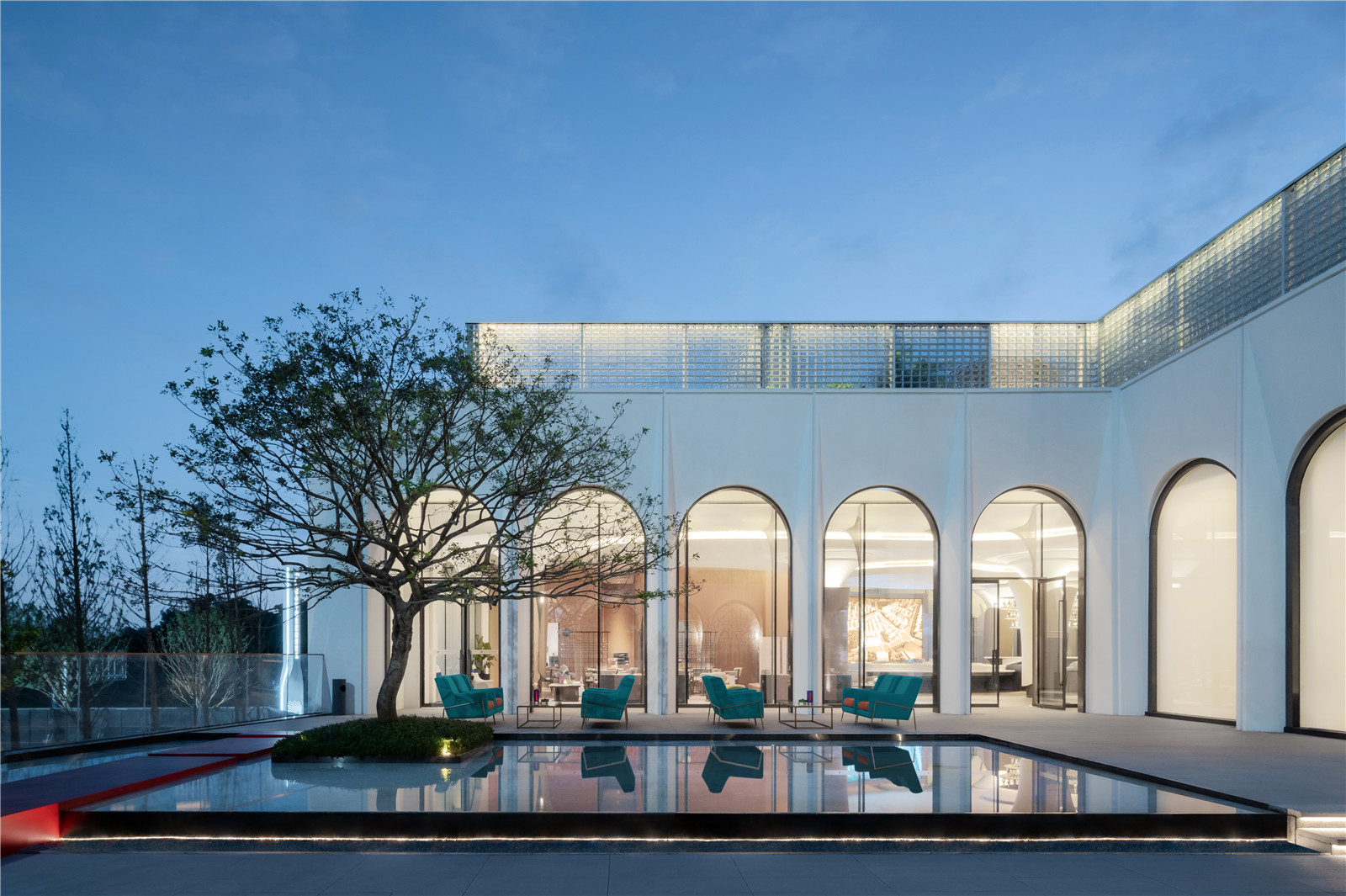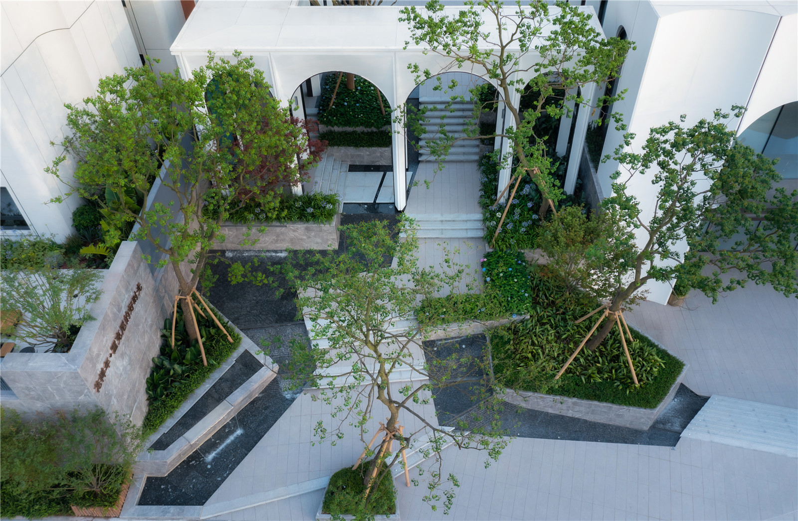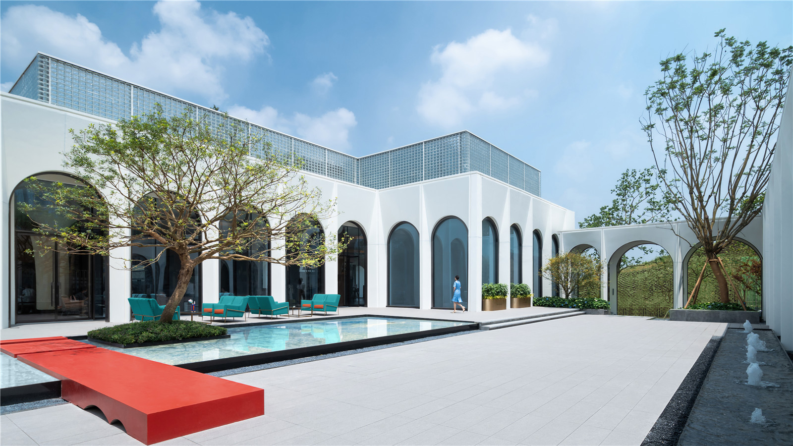 提取畫作中澄澈的碧藍(lán)色調(diào)為意象,繪制為入口處的折形種植池,極富“氣韻生動(dòng),遷得妙想”之精髓。