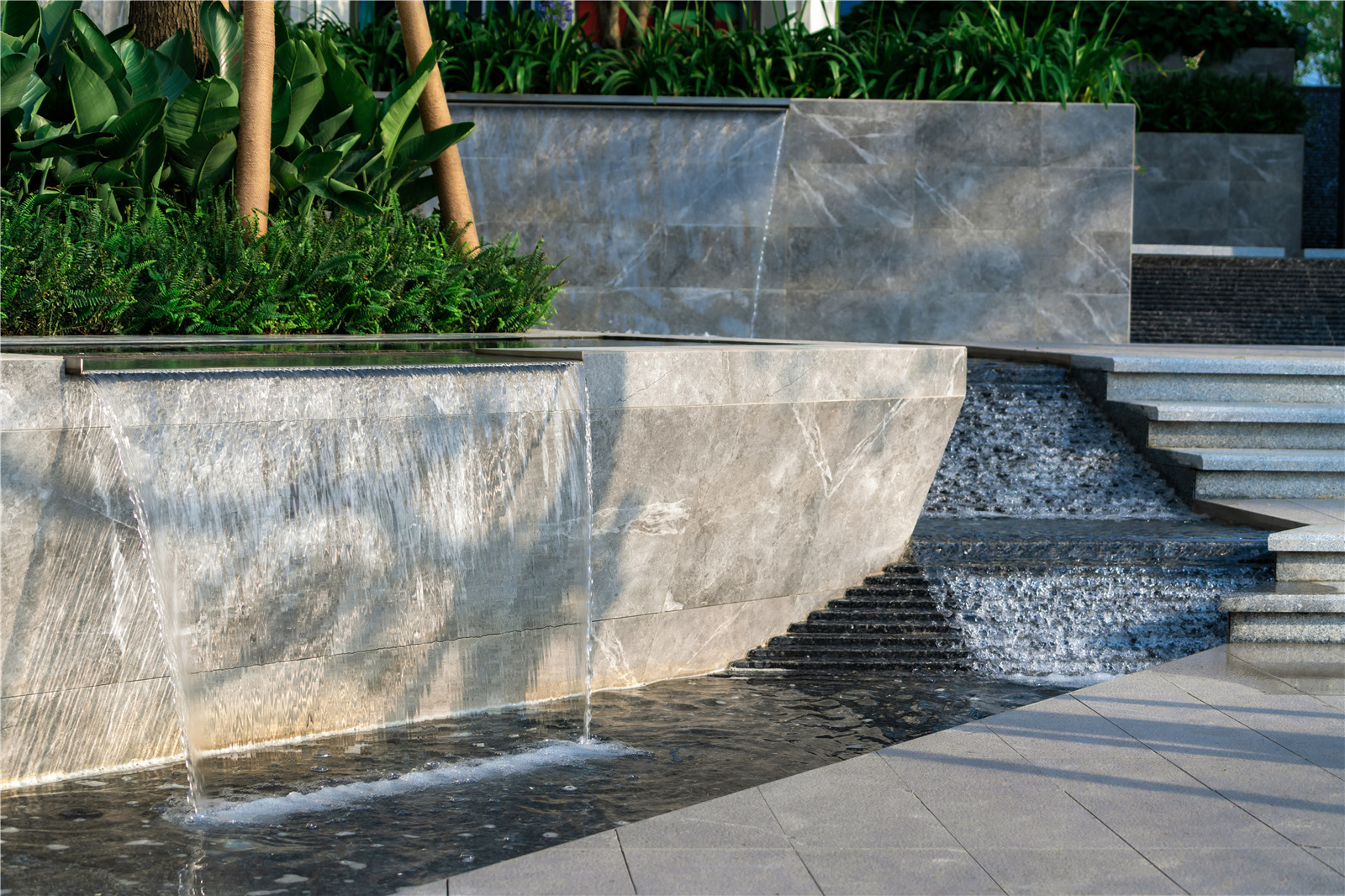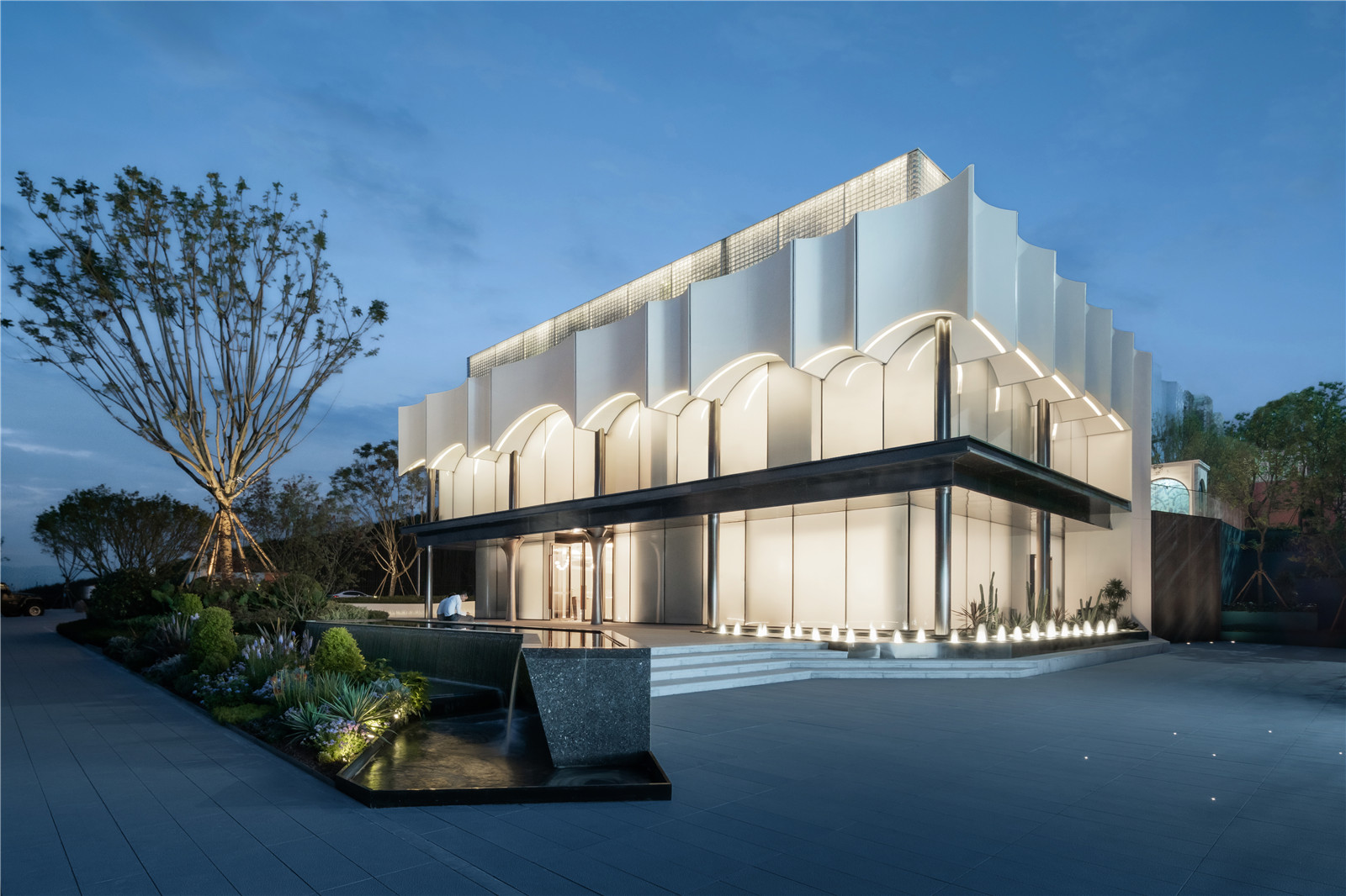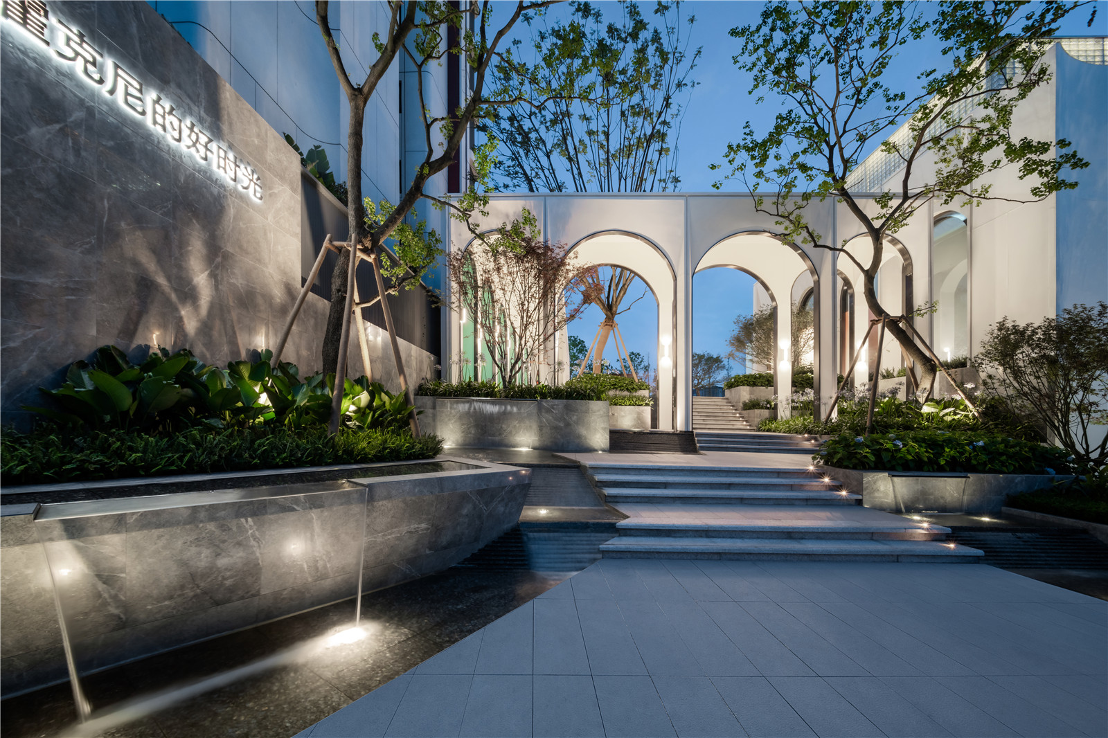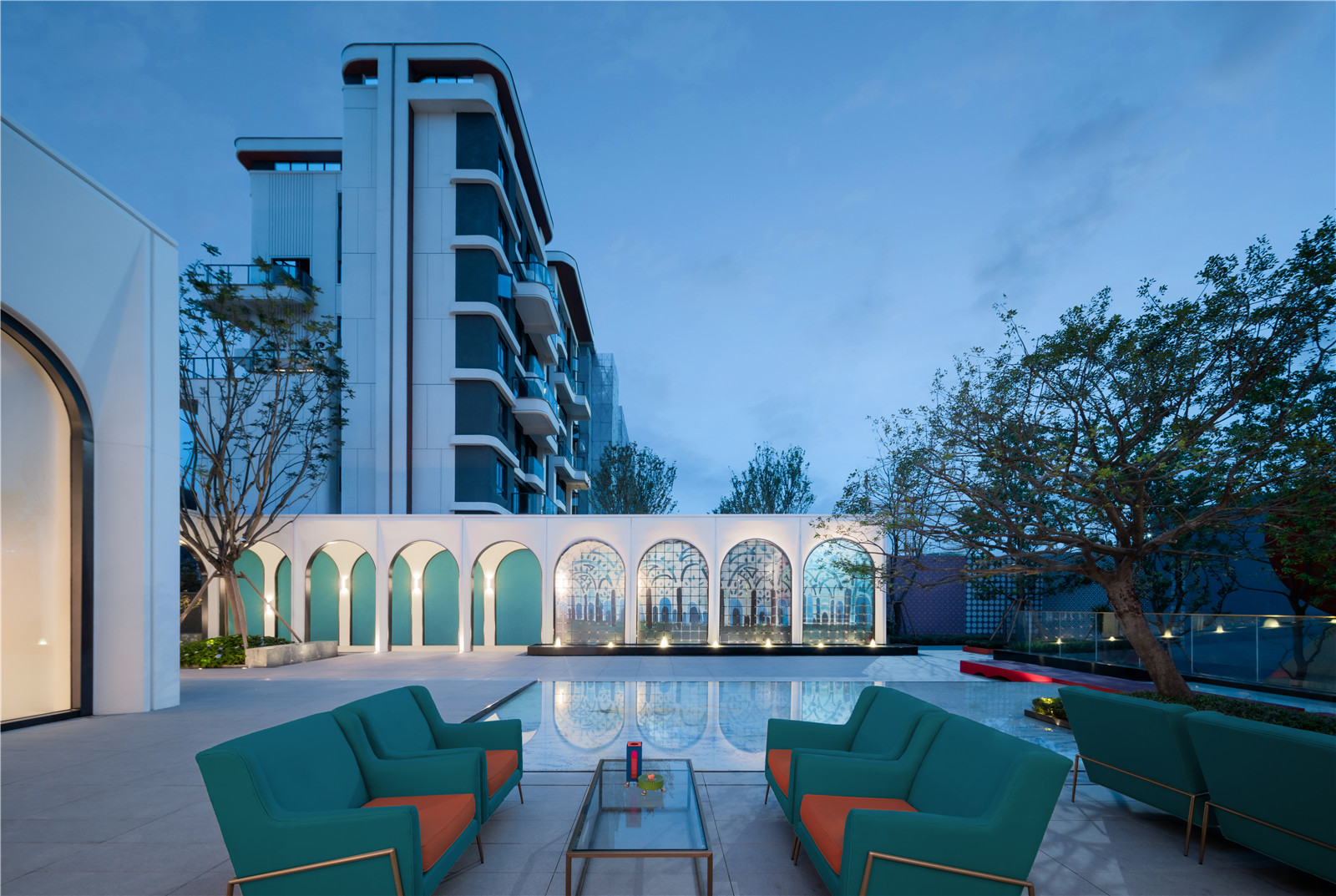 提取畫作中澄澈的碧藍(lán)色調(diào)為意象,繪制為入口處的折形種植池,極富“氣韻生動(dòng),遷得妙想”之精髓。