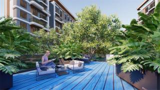 于闌珊轉(zhuǎn)角處,遇見詩(shī)意盎然,穿過社區(qū)泳池廣場(chǎng),獨(dú)立模塊樹脂磚夾絹。大衛(wèi)?霍克尼藝術(shù)畫作—《安達(dá)盧西亞》景墻區(qū)隔開加州的陽(yáng)光與宅間自然。