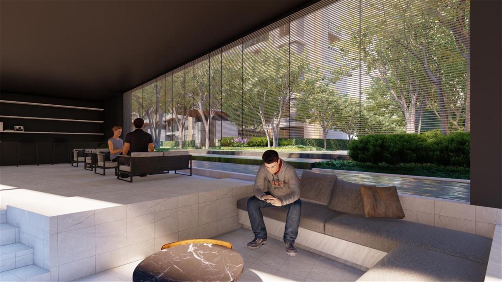“一旦沖破單眼觀察的限制,各種驚人的事情都可能出現(xiàn)。”社區(qū)入口臺(tái)階我們以霍克尼1982年所作的《立體主義酒吧》為靈感范本。