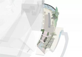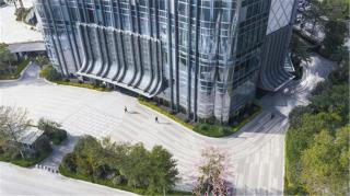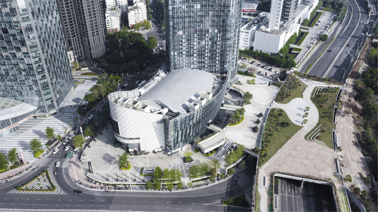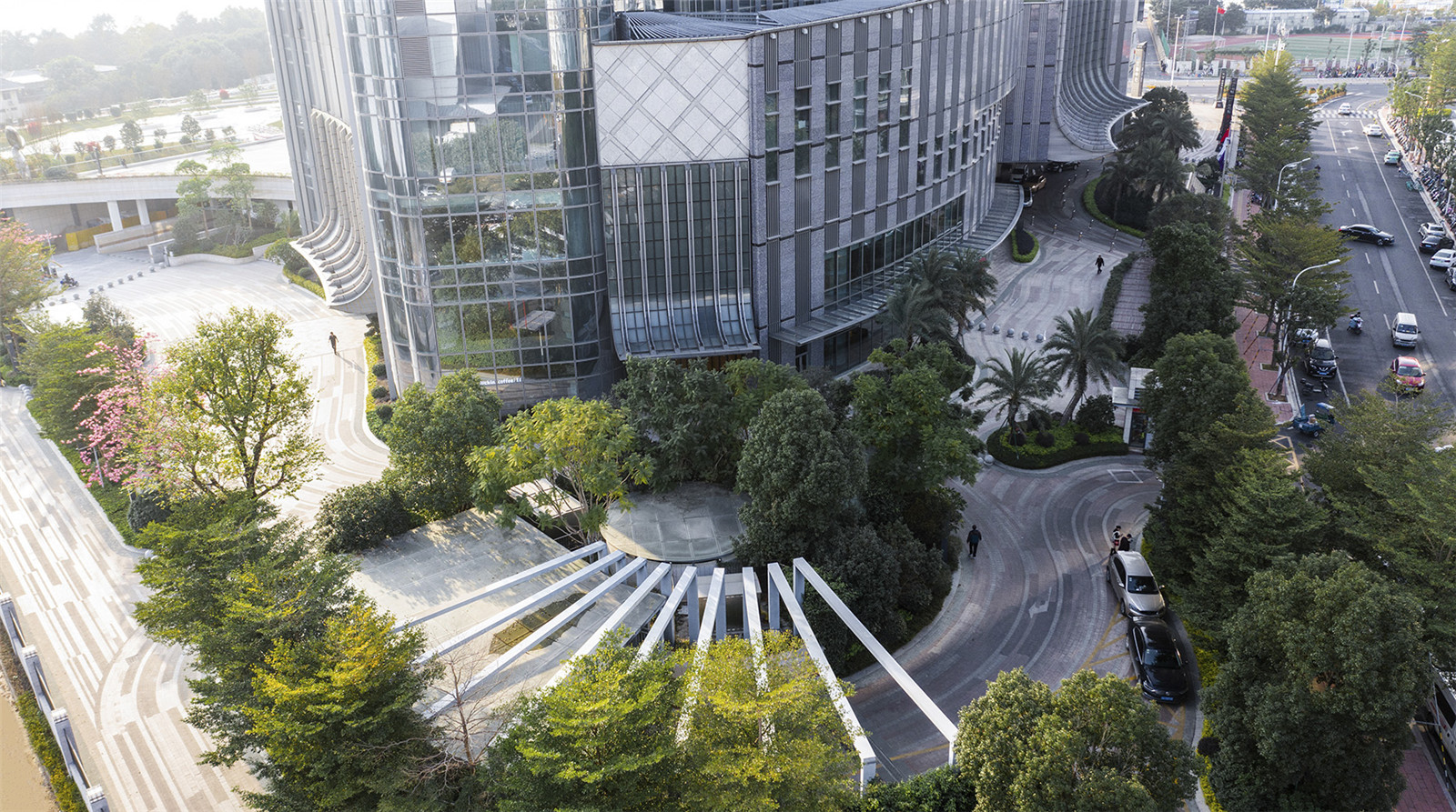 建筑的表皮詮釋了虛擬流水從天而下的線條,景觀延續(xù)閩江之水的概念,特色鋪裝如水紋線條與建筑線條的呼應(yīng)。2層引入閩江公園的人流,1層引入西側(cè)城市人流,流到自身聚心型內(nèi)核環(huán)境,閉環(huán)的商業(yè)情景,全系統(tǒng)流線一層一世界的體驗(yàn)花園。同時(shí)"上層借下層喬木綠量",西南季風(fēng)風(fēng)口的導(dǎo)入,塑造宜人的綠意盎然的商業(yè)環(huán)境。
