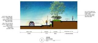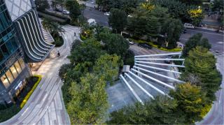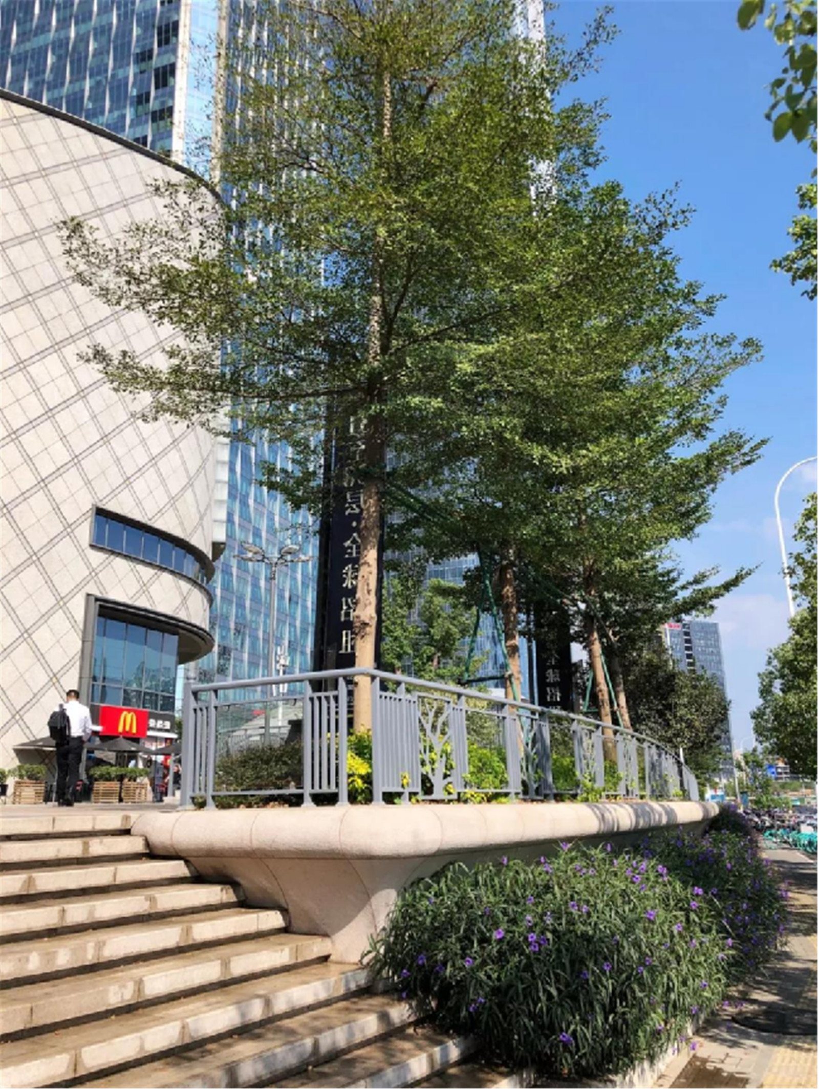 利用紅線在有限的空間內(nèi)加大綠量,上層喬木下層灌木的立體種植,與喧鬧的城市環(huán)境,做景觀空間的宜人處理的細(xì)節(jié)。