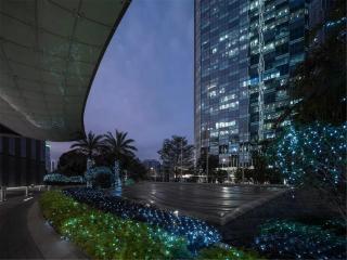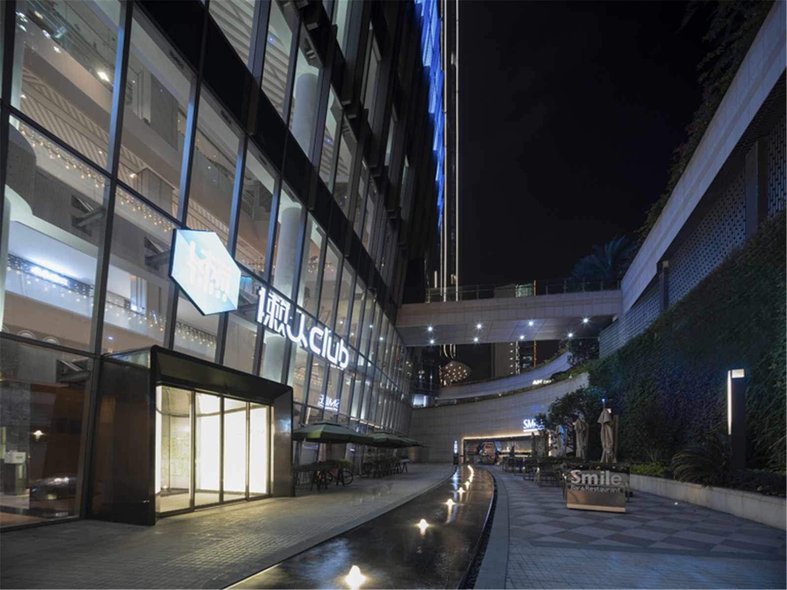夜幕下建筑燈光線條與景觀鋪裝,燈具與綠島...完美的詮釋了"建筑如瀑,景觀如水"的空中流水花園。水島植物配置,流水線條鋪裝與建筑線條共同構(gòu)成了一個(gè)景觀建筑功能和流線一體化設(shè)計(jì)的呼應(yīng)。