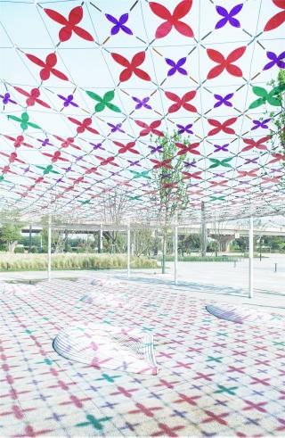 ▼懸掛彩網(wǎng)投射繽紛的光影