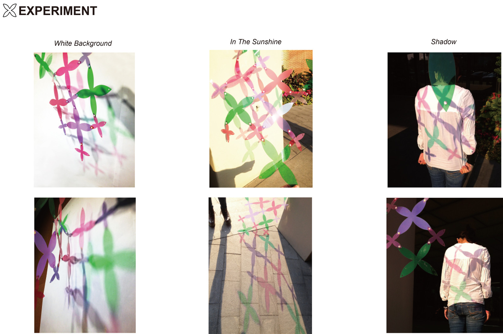 ▼蝴蝶花紋在不同背景和光環(huán)境下的光影效果