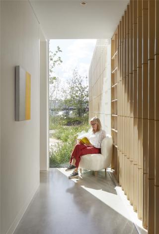 麥琪中心的首席執(zhí)行官Dame Laura Lee DBE說:“我對阿曼達?萊特與她的AL_A團隊設計的最新中心感到非常激動。他們優(yōu)雅地詮釋了我們的需求,對細節(jié)的追求創(chuàng)造了一個令人驚嘆的建筑,大窗戶使自然光線充盈了中心。他們在室內外空間的發(fā)揮,以及與景觀設計師Sarah Price的密切合作,創(chuàng)造了一個花園,讓癌癥患者和我們的員工欣賞到四周的綠意。既有私密的房間保護隱私,又有公共空間將人們聚集在餐桌旁,分享他們的故事,并相互支持。”