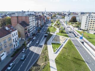 The Tangent to the east of the city will largely take over the transit function for motorized traffic, freeing up a considerable amount of space on the Mechelse Vesten. Responding to this opportunity, the Vests have been divided into two parts. A northern part that will have an urban boulevard profile and a southern part that, thanks to its considerable width, can transition into a Vestenpark. A continuous park structure with more space for cyclists and public transport will become the new identity for one of the most characteristic spaces of the city. This intervention restores the balance between circulation and accommodation. The new, robust green structure softens the urban heating effect and is thus used to make Mechelen more climate adaptive.
