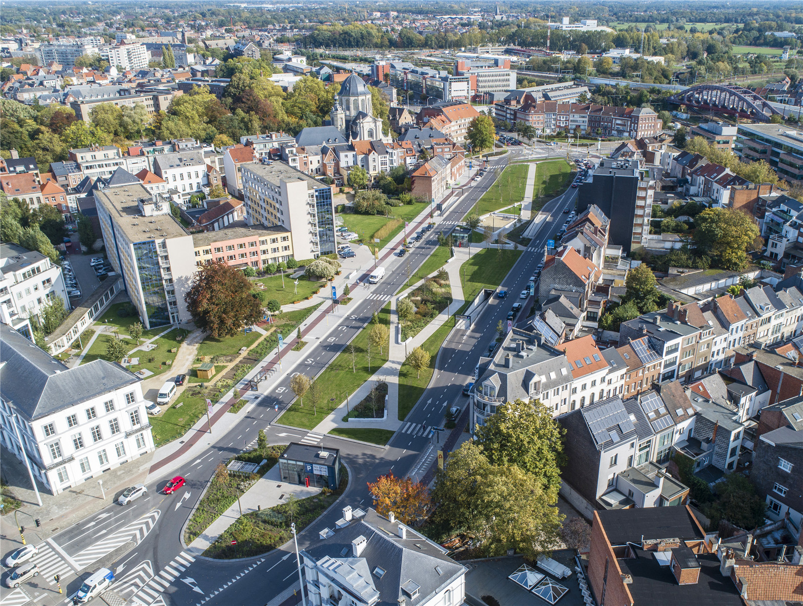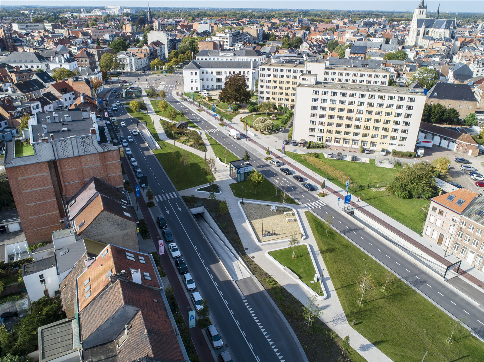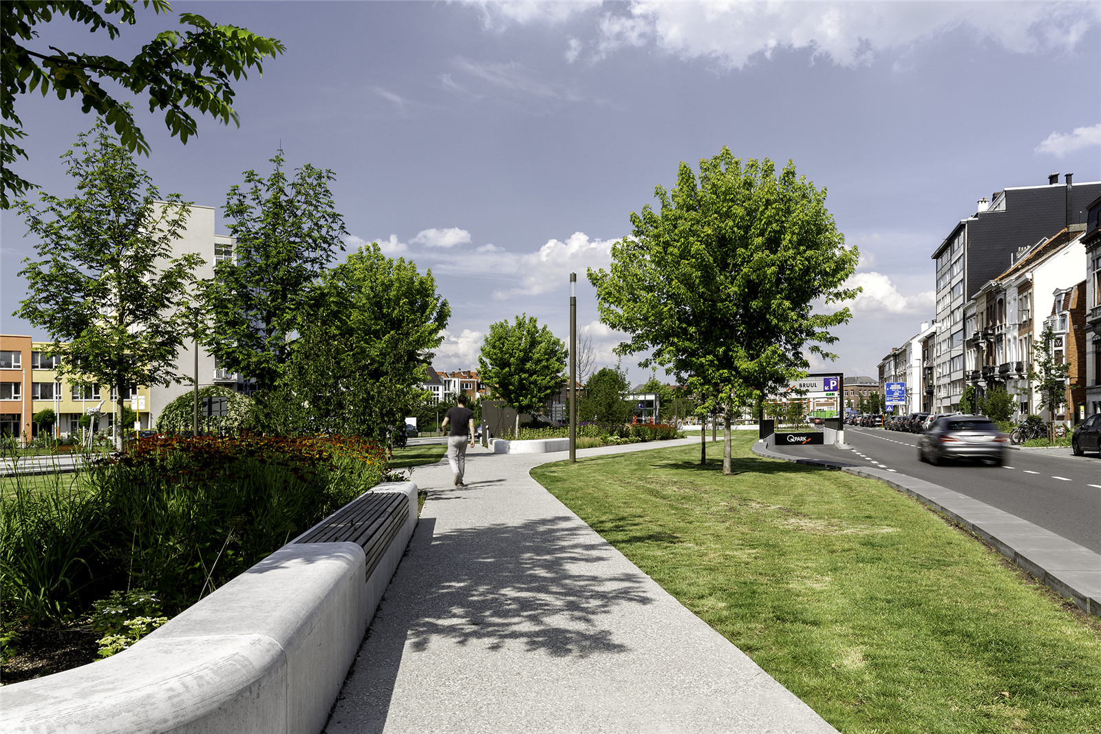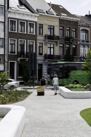 Thanks to the Vestenpark, Hendrik Speecqvest can once again match the situation of the 19th century, just after the damming up of the city canal. Today's Vesten is a prominent barrier for vulnerable road users. New transverse structures, linked to a linear path structure for cyclists and pedestrians, ensure fluid connections between the various functions and pleasant walking routes from, to and on the Vesten. The design with sitting walls and planting areas accentuates logical walking routes and guides the users, creating safe and legible intersections.
