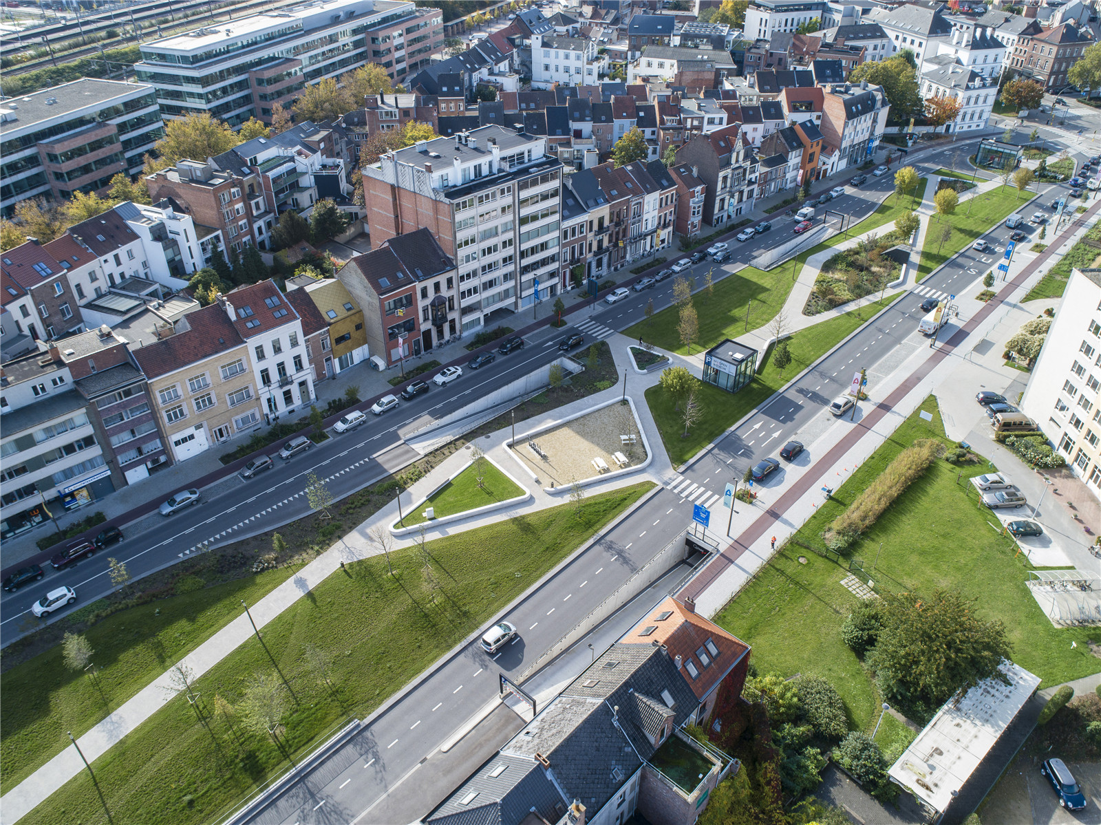 Despite the fact that the timing of the Tangent and the underground car park could not be coordinated, it was decided to already realize the final design. Before the completion of the Tangent the car capacity remains on 2x 2lanes. At the inauguration of the Tangent, expected in 2022, the right hand lanes will be converted to bus lanes and the car capacity will be reduced to a 2x1 profile.