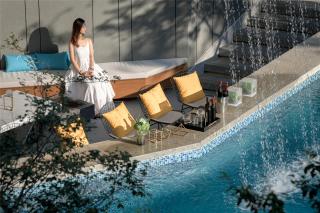 水瀑下軟椅,吧臺(tái),篝火,一杯小酒,微醺,是身心的放松,是度假般的愜意。