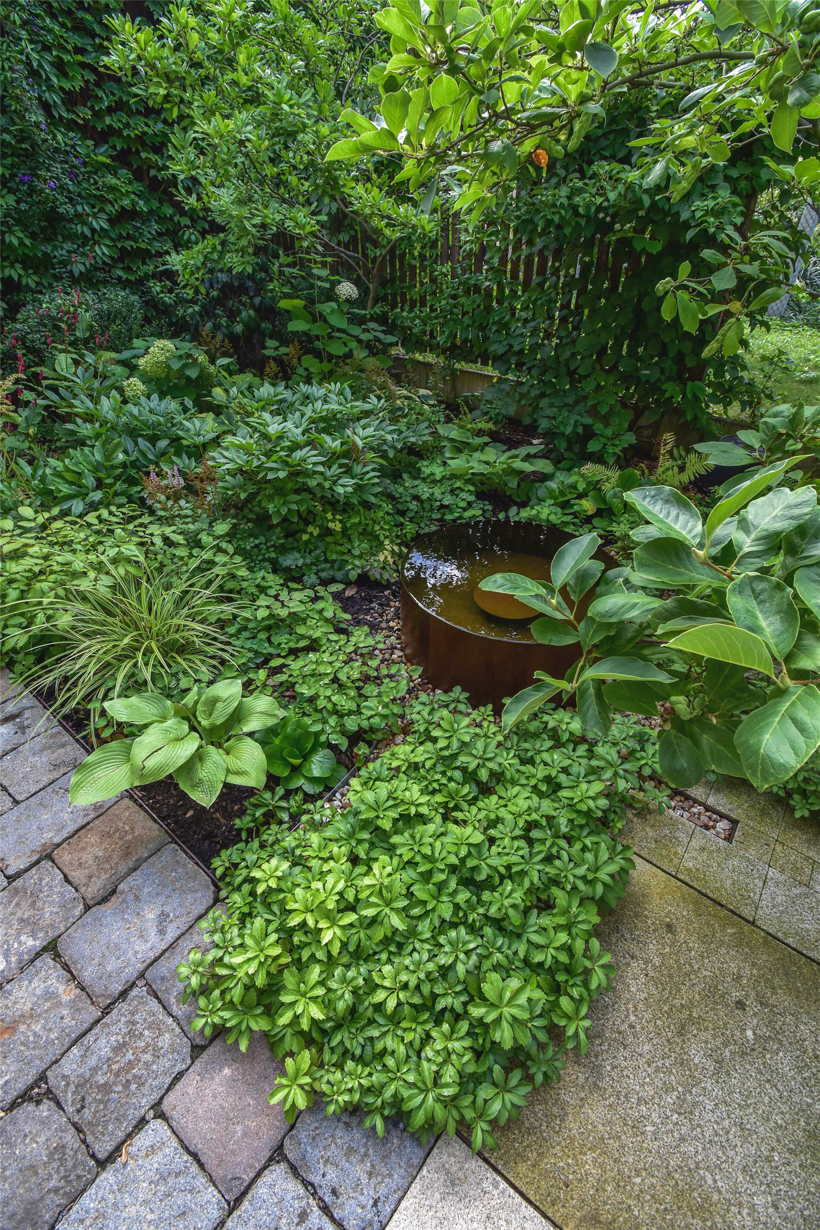 ▼藏在綠植中的水景