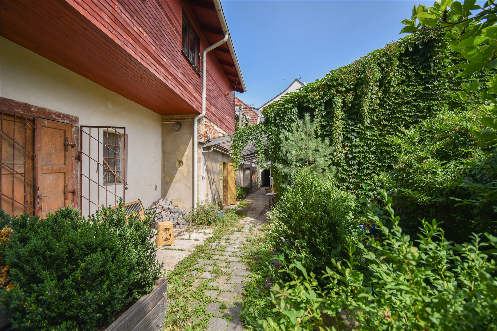 This commission was no ordinary. A little courtyard in a narrow plot is squeezed between buildings and peculiar sheds. The narrow plot itself has one end in a beautiful historical square and the second pointing towards a small river. It immediately caught our attention. Lots of questions. It's so tiny! It’s not even entirely theirs! Is it even cost effective? The task became almost tantalizing.