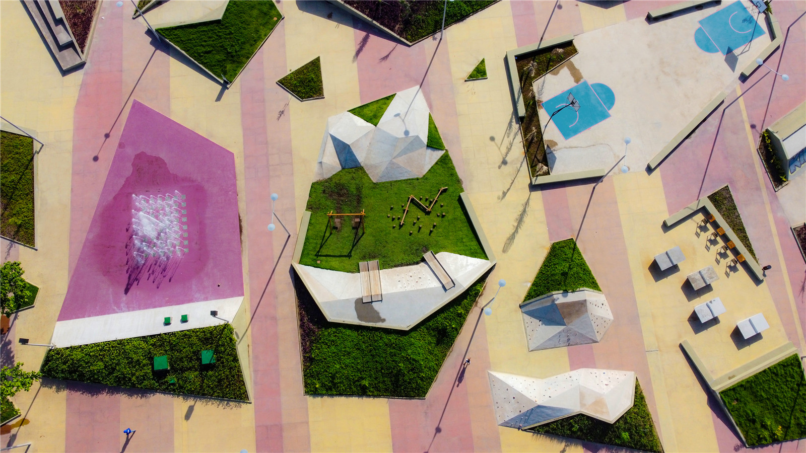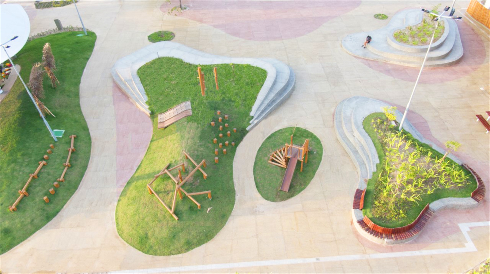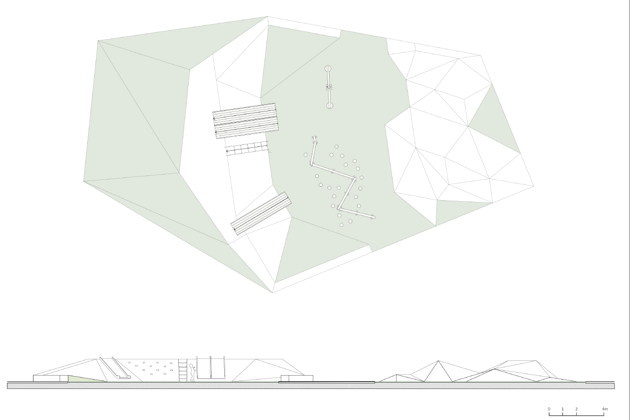▼充滿流動性的屋頂結(jié)構(gòu)和場地設(shè)計元素
