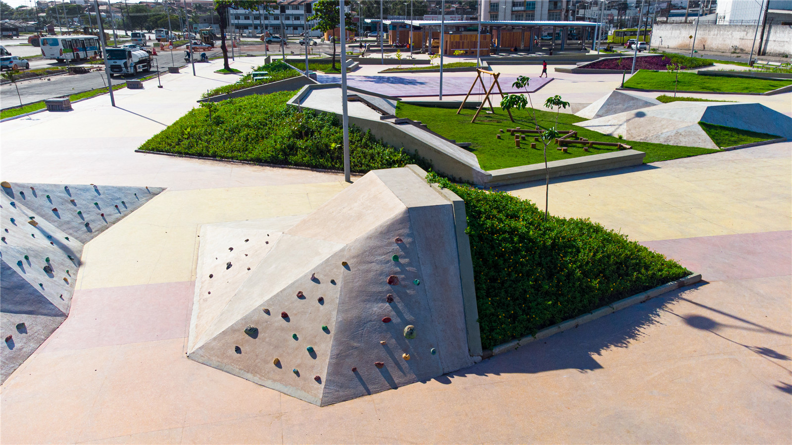 改造后,公交總站周邊地區(qū)擁有了滑板公園、游樂場、運動和環(huán)境教育空間,以及互動噴泉和售貨亭等設(shè)施,使超過150人受益。
