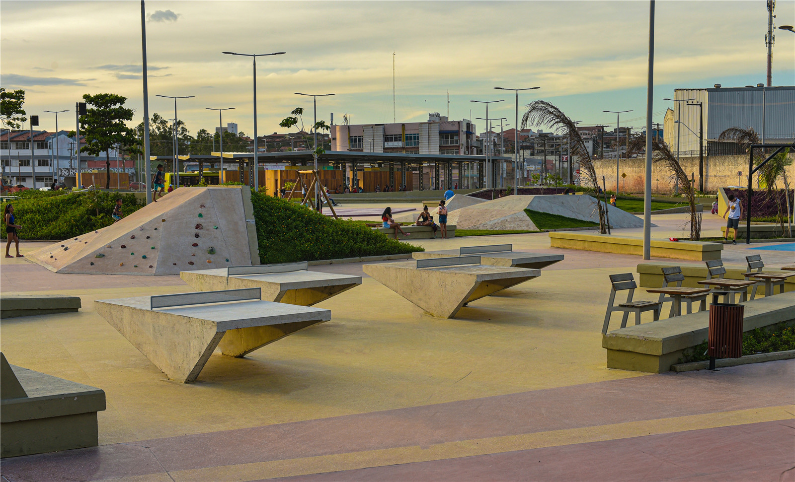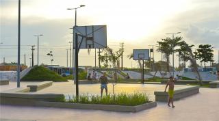 Just around the Bus Terminal, more than 150 people benefited from the project, which brought the construction of a skateboard park, a playground and an area for sports and environmental education, as well as an interactive water fountain and many kiosks for the merchants.