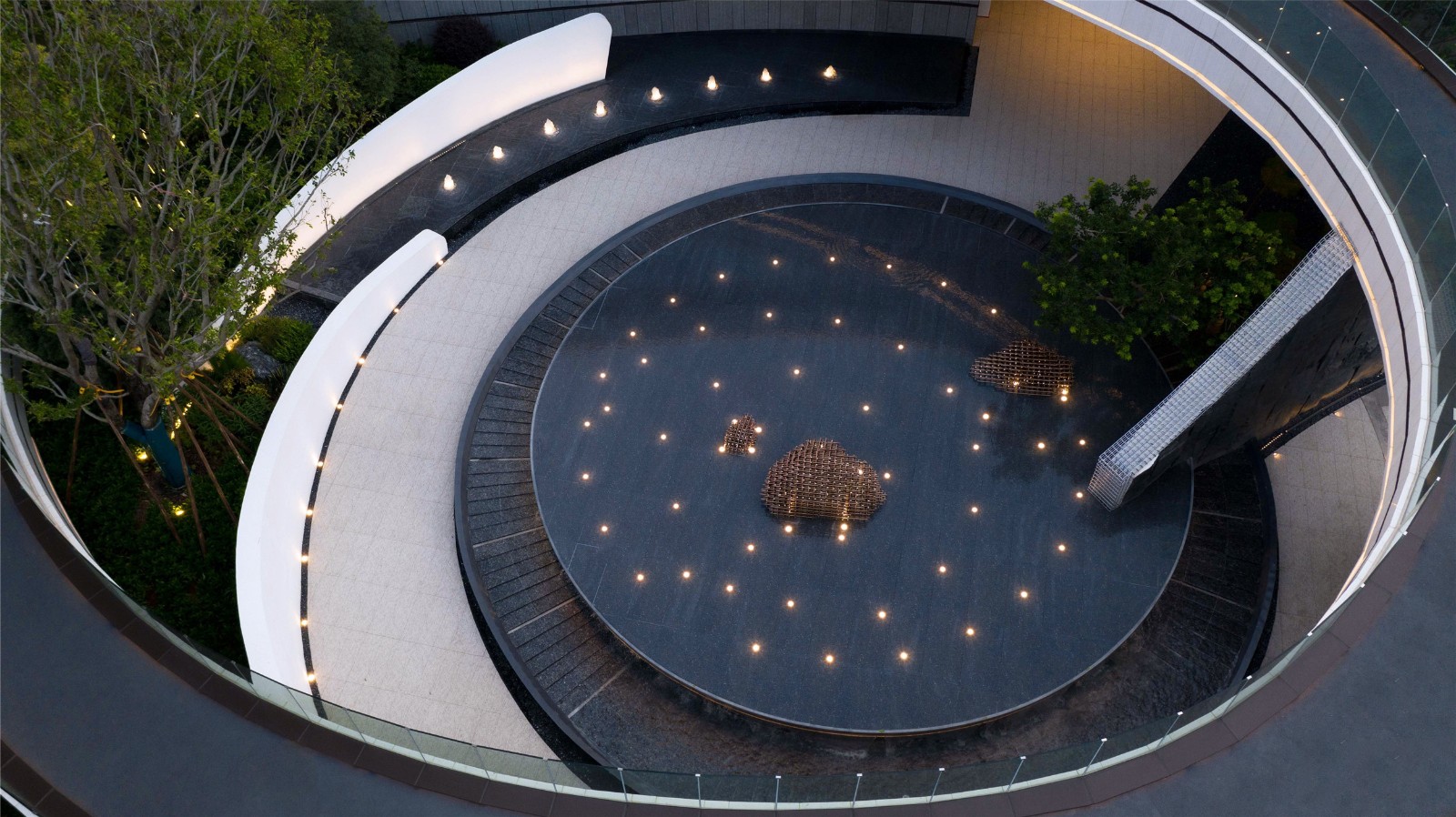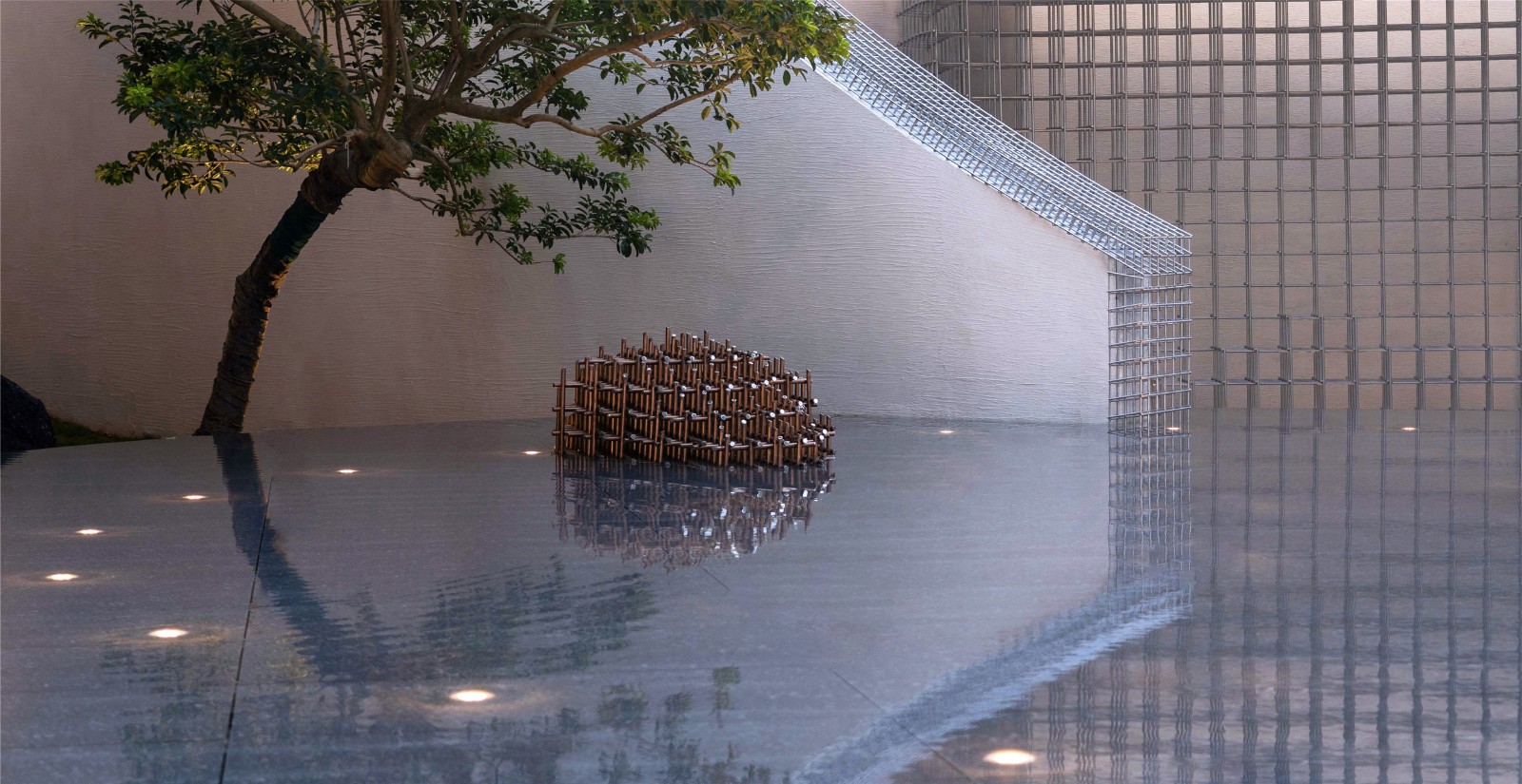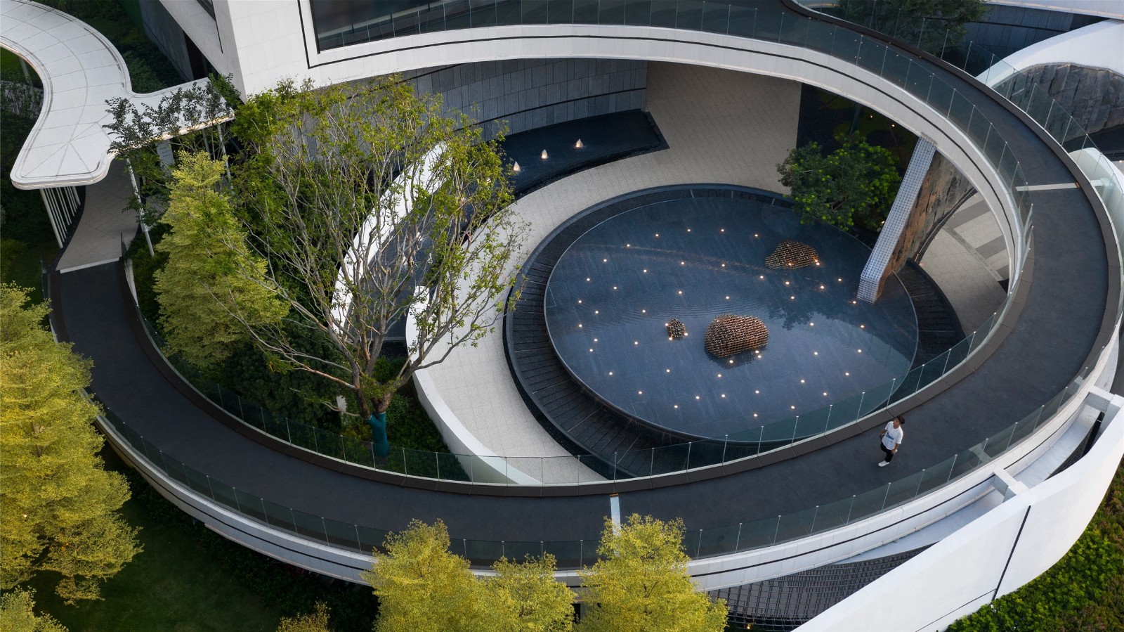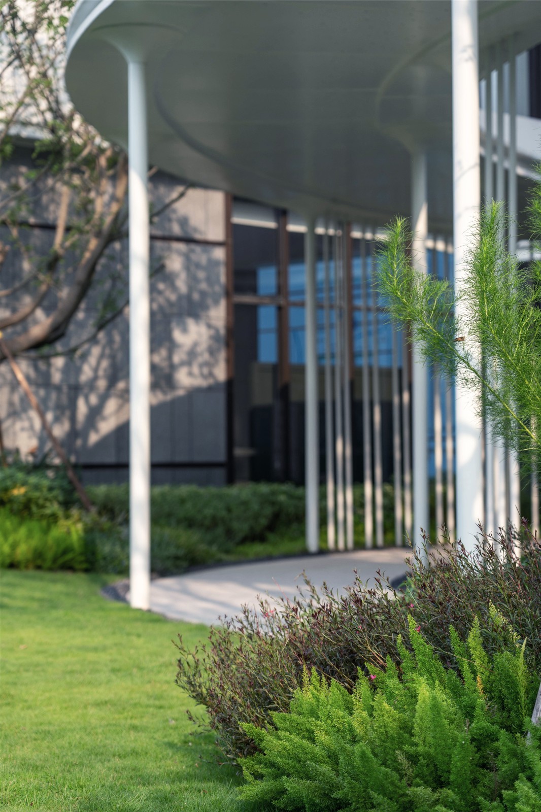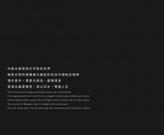 棱角分明的格柵墻與圓弧形的島中湖相互輝映