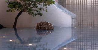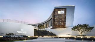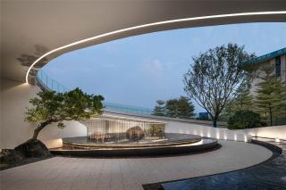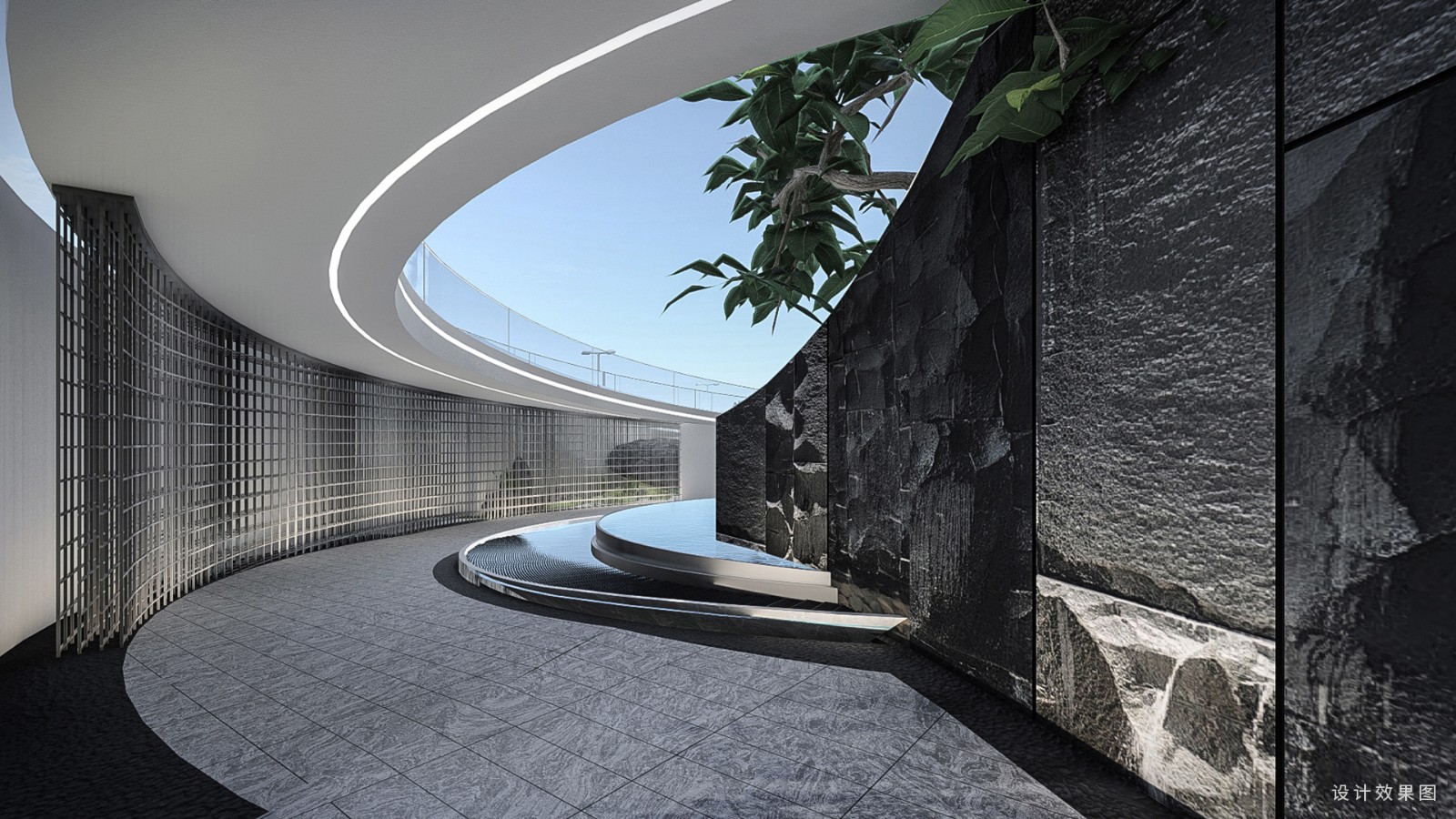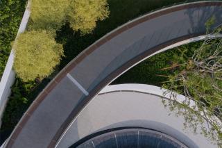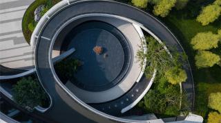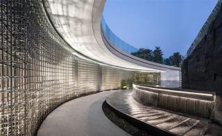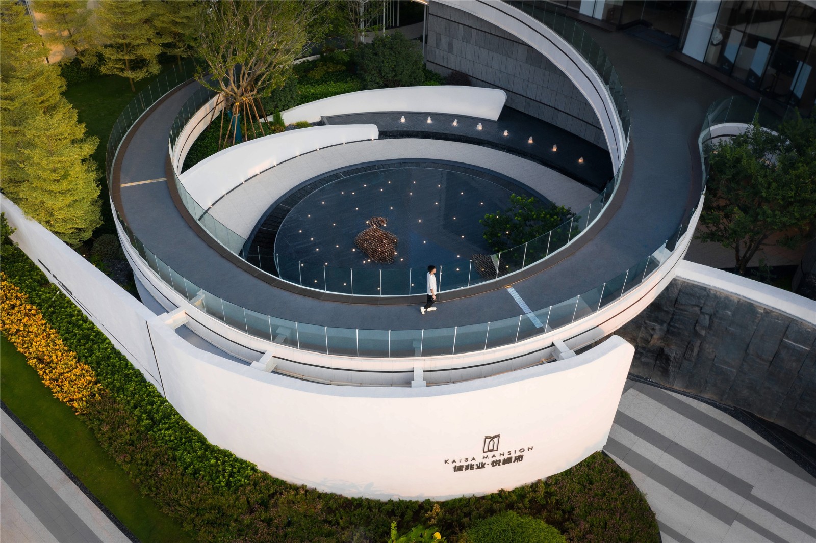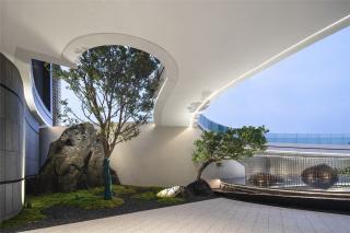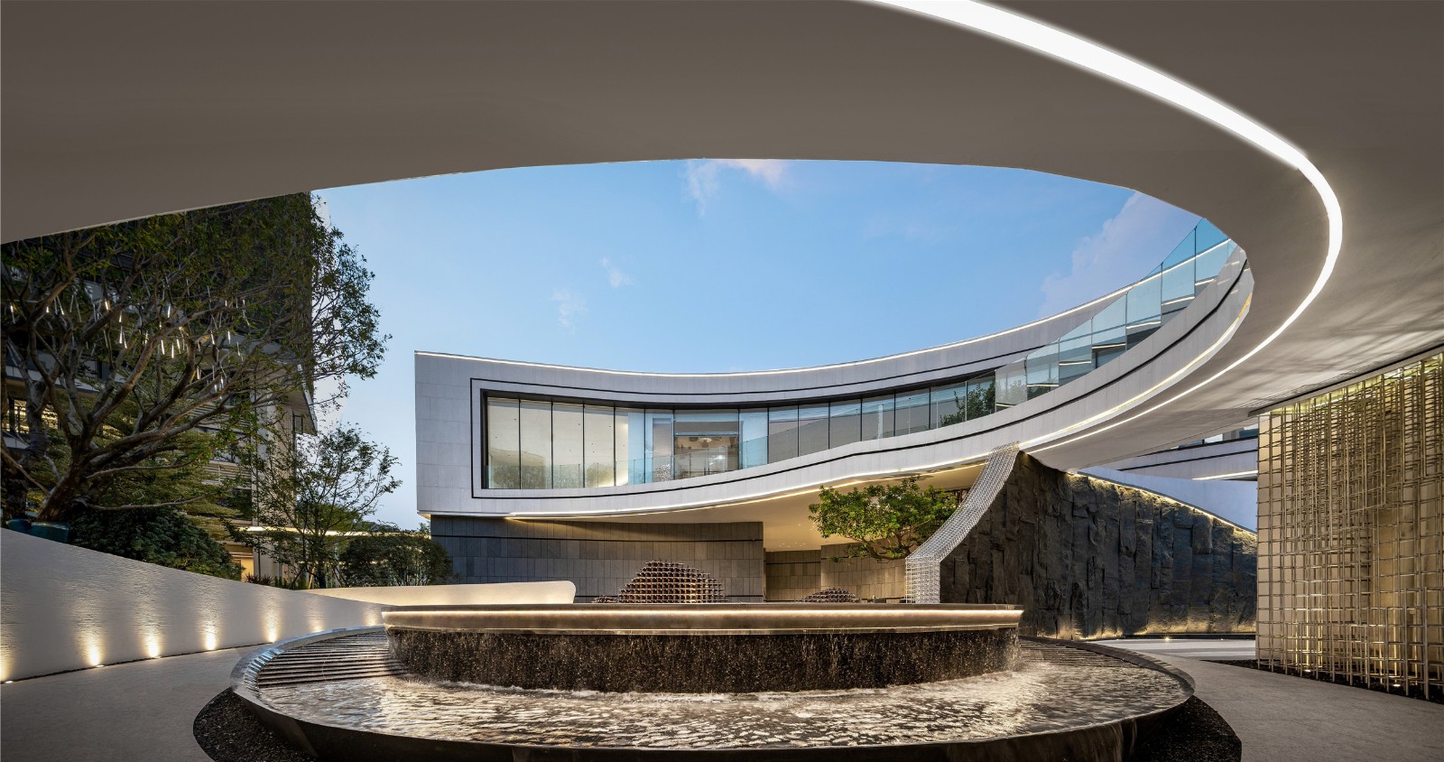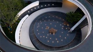 棱角分明的格柵墻與圓弧形的島中湖相互輝映