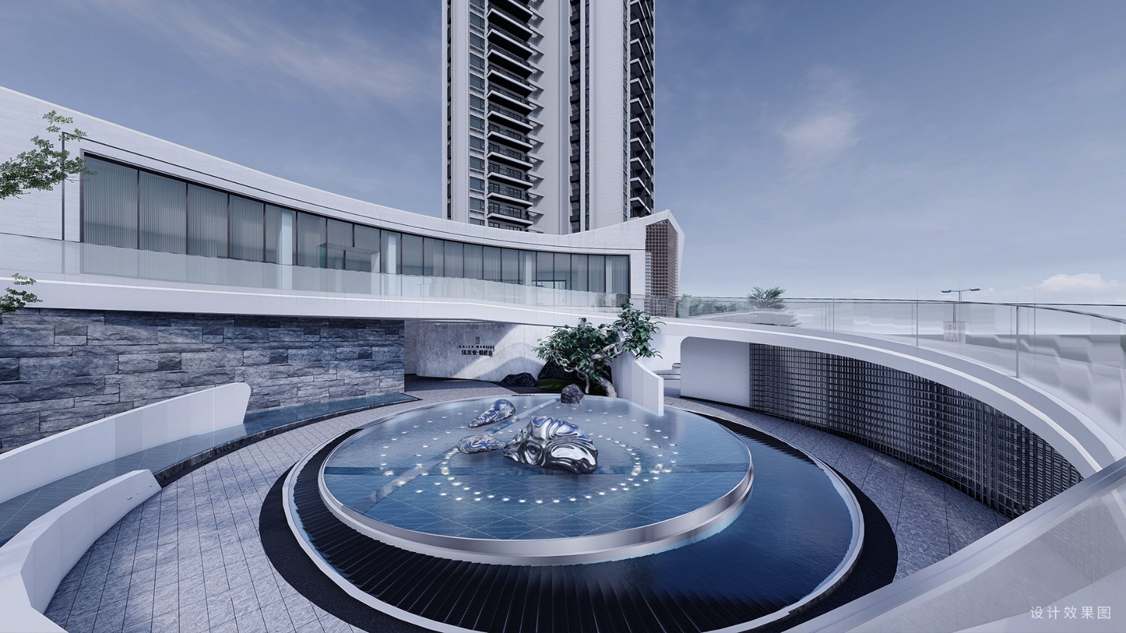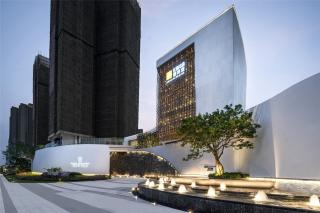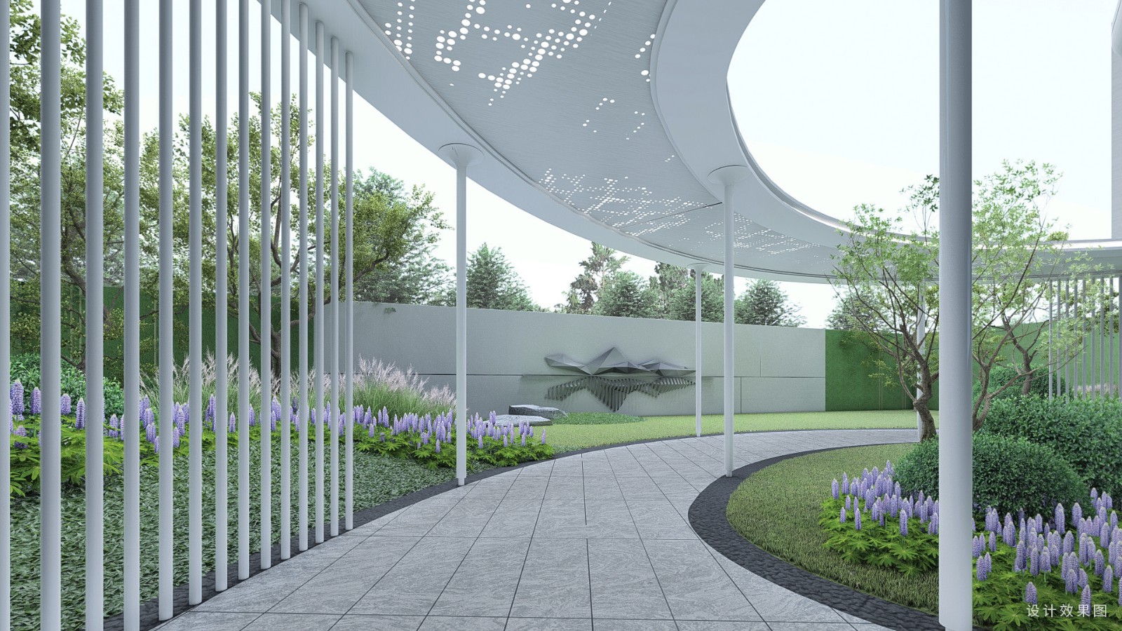 頂部星輝掩映,兩側富有韻律感的白色通體格柵