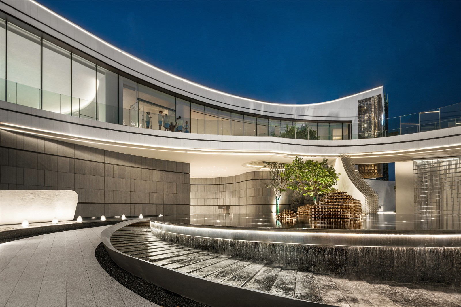 夜晚燈光亮起,墻面猶如漂浮般存在于此