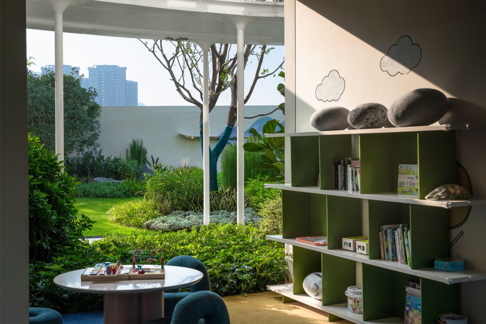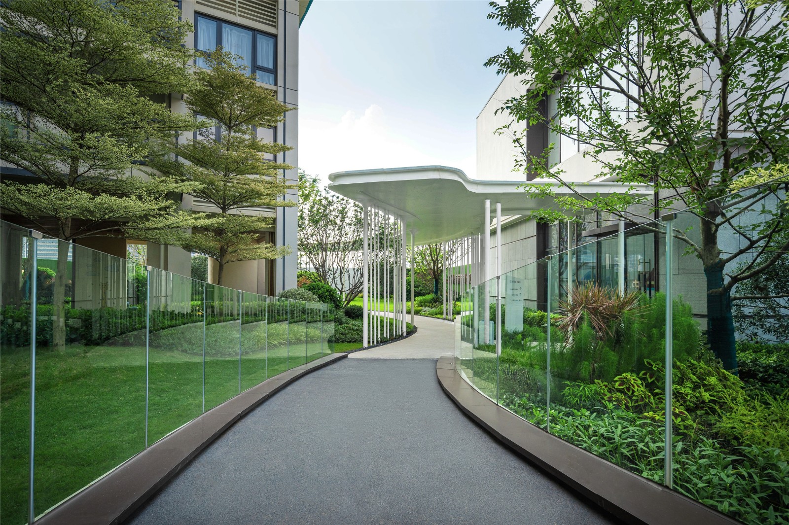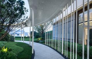 外立面采用氣泡表皮進行裝飾 綠籬墻將它與外界隔絕開