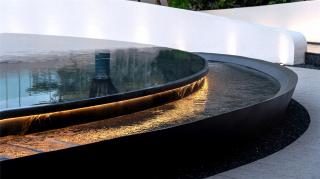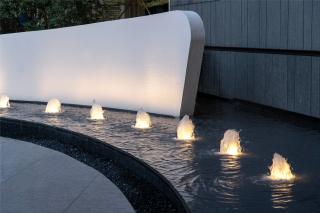 矮墻搭配半層花鏡,潺潺流水嬉嘻作響