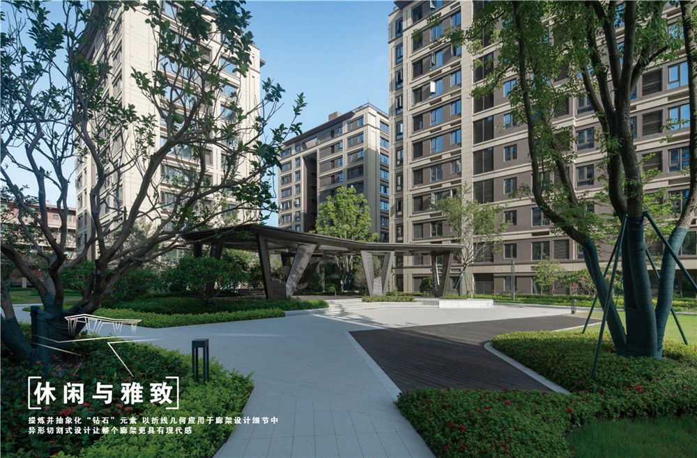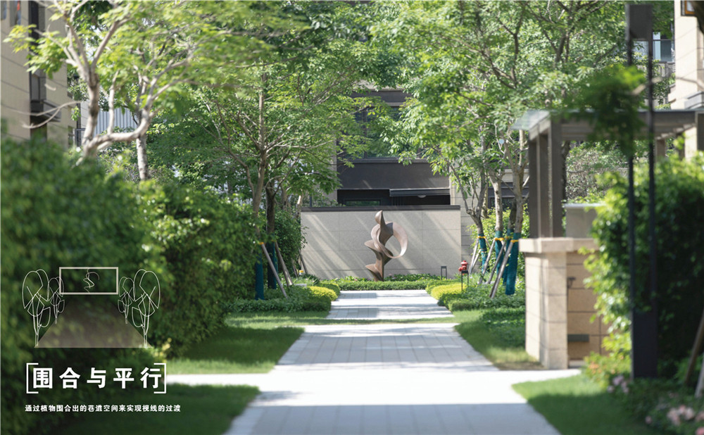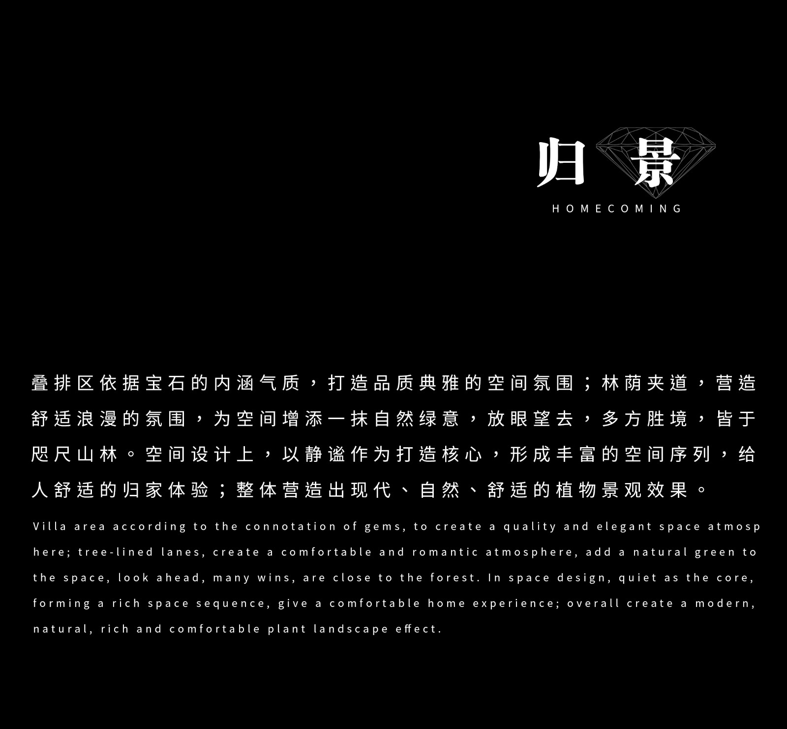 Villa area according to the connotation of gems, to create a quality and elegant space atmosphere; tree-lined lanes, create a comfortable and romantic atmosphere, add a natural green to the space, look ahead, many wins, are close to the forest. In space design, quiet as the core, forming a rich space sequence, give a comfortable home experience; overall create a modern, natural, rich and comfortable plant landscape effect.